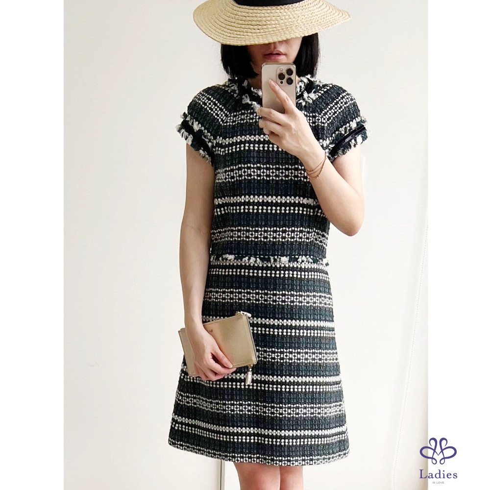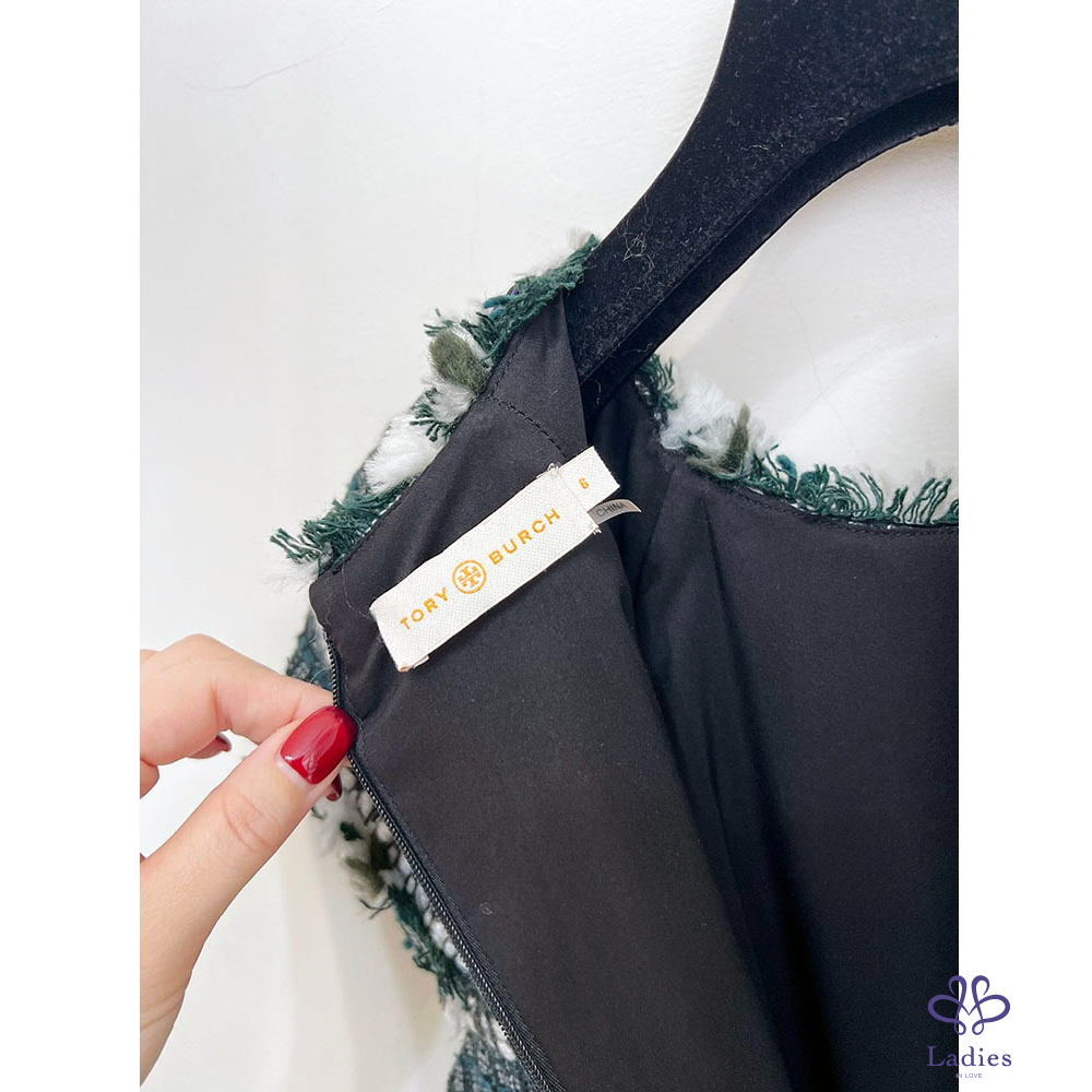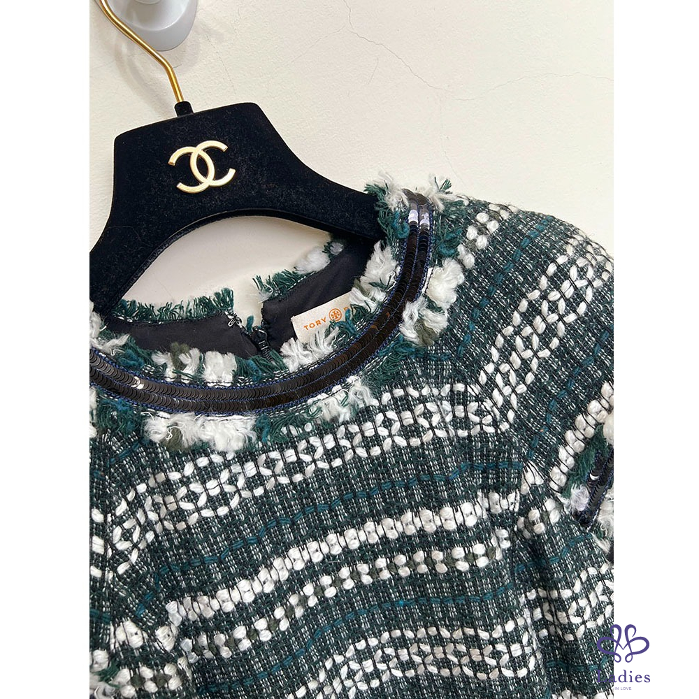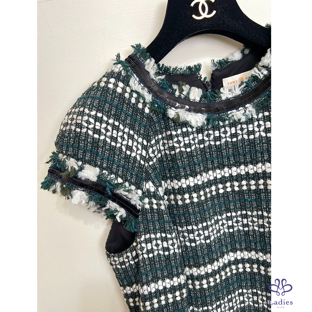 TORY BURCH 英國綠條紋毛呢短袖洋裝