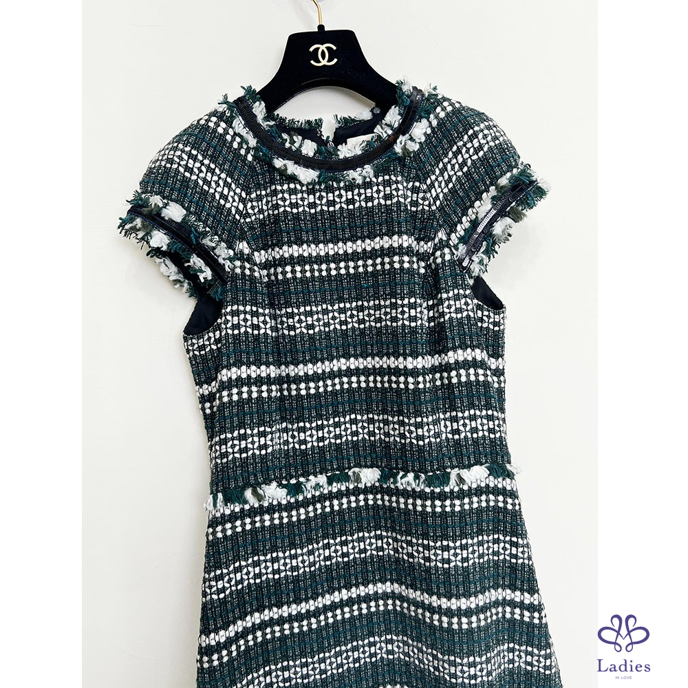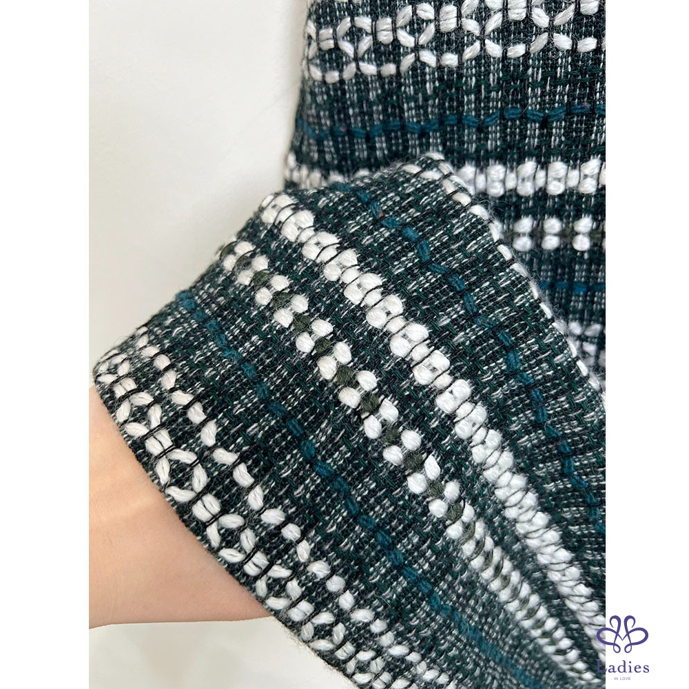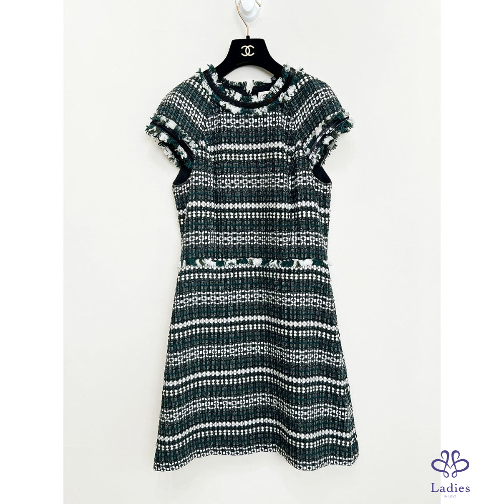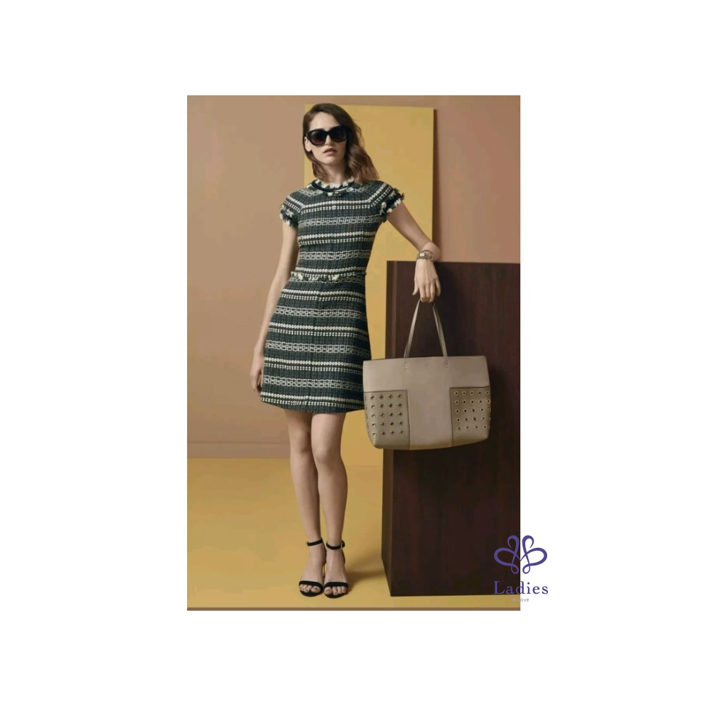 TORY BURCH 英國綠條紋毛呢短袖洋裝