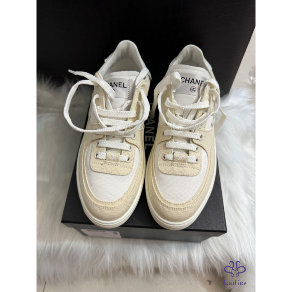 產品信息 它團同步 A2460 #bi在ㄔㄨㄥㄞ 香奈兒休閒鞋好搭配又好穿 買了好幾個顏色,淺米色鞋百搭又清爽 因為櫃姐特別留不好意思不拿 故釋出給喜歡的美女🥲賠售出 只賣2天到6/8晚上沒賣出自留 專櫃43000 配售36000含運 ▫️狀況:全新 ▫️尺寸:38 ▫️顏色:淺米 ▫️購處:台灣專櫃 ▫️附件:印本購證.盒.紙袋 台北可面交