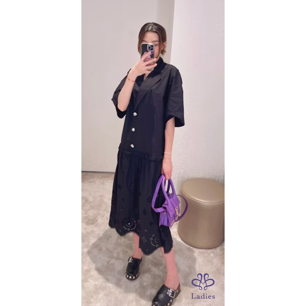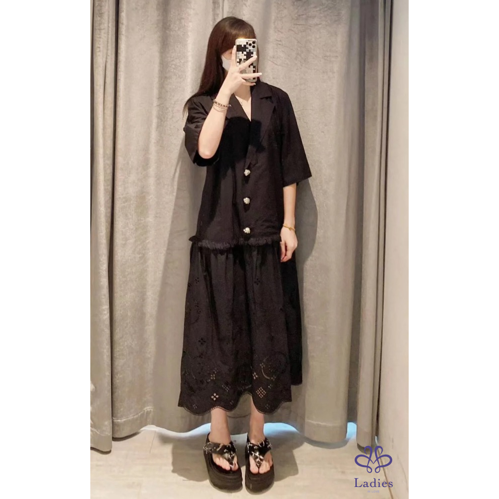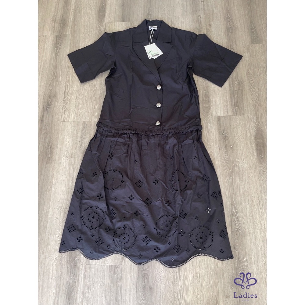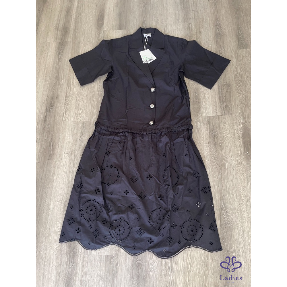 全新丹麥GANNI 西裝領子黑色襯衫洋裝甜美少女風