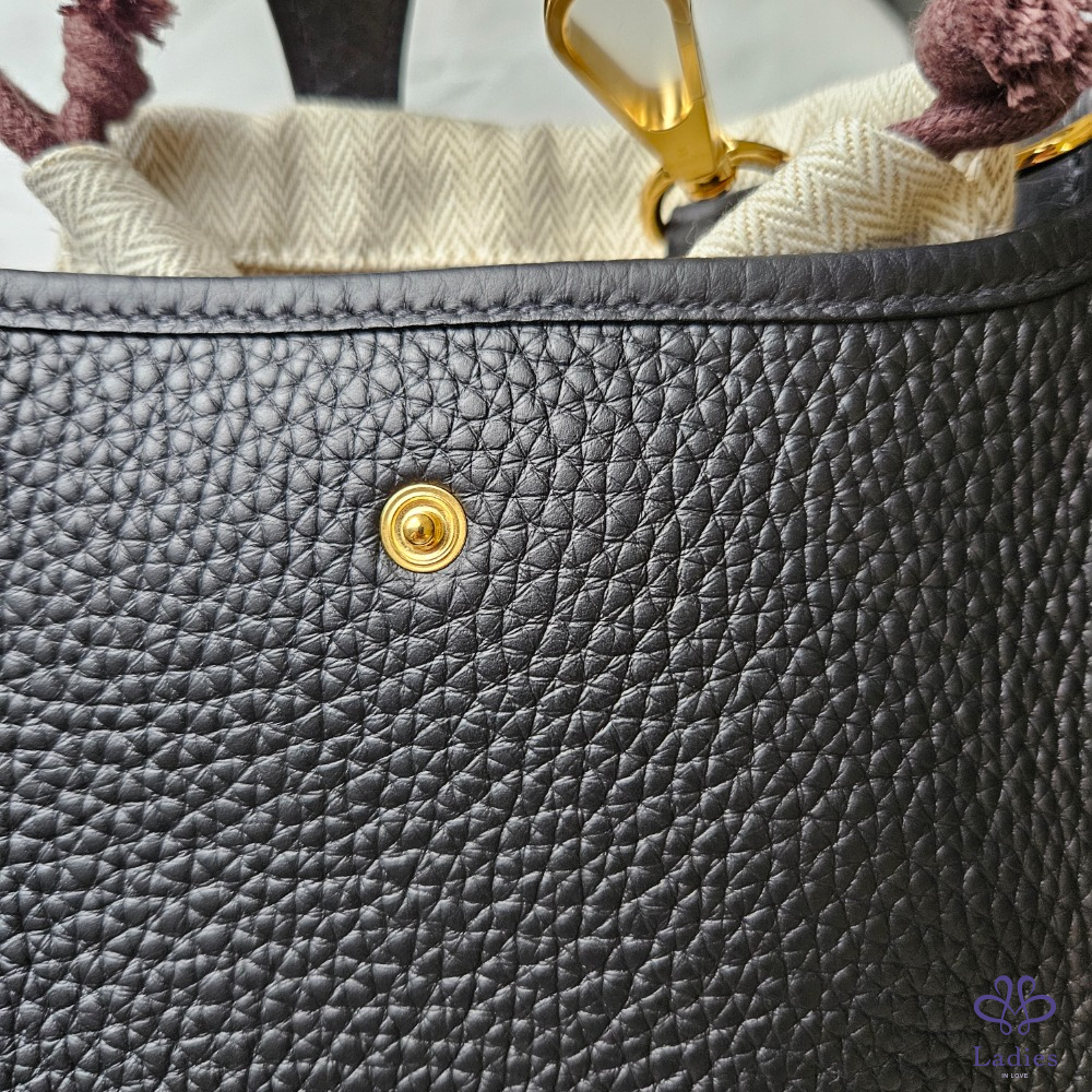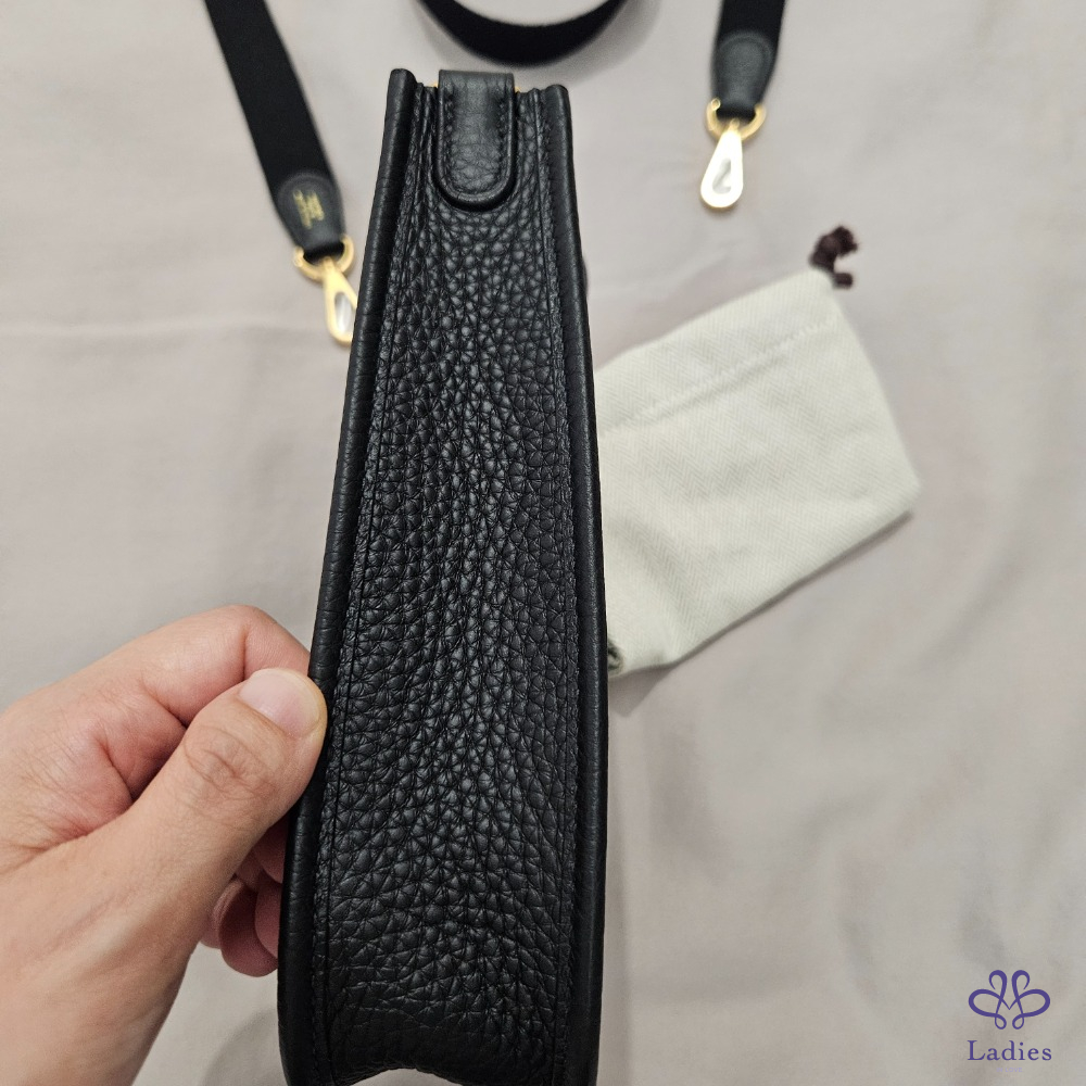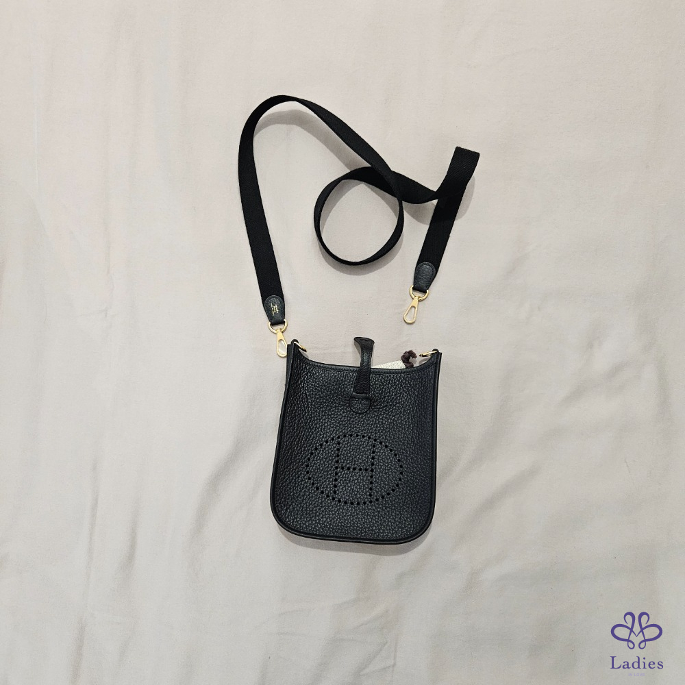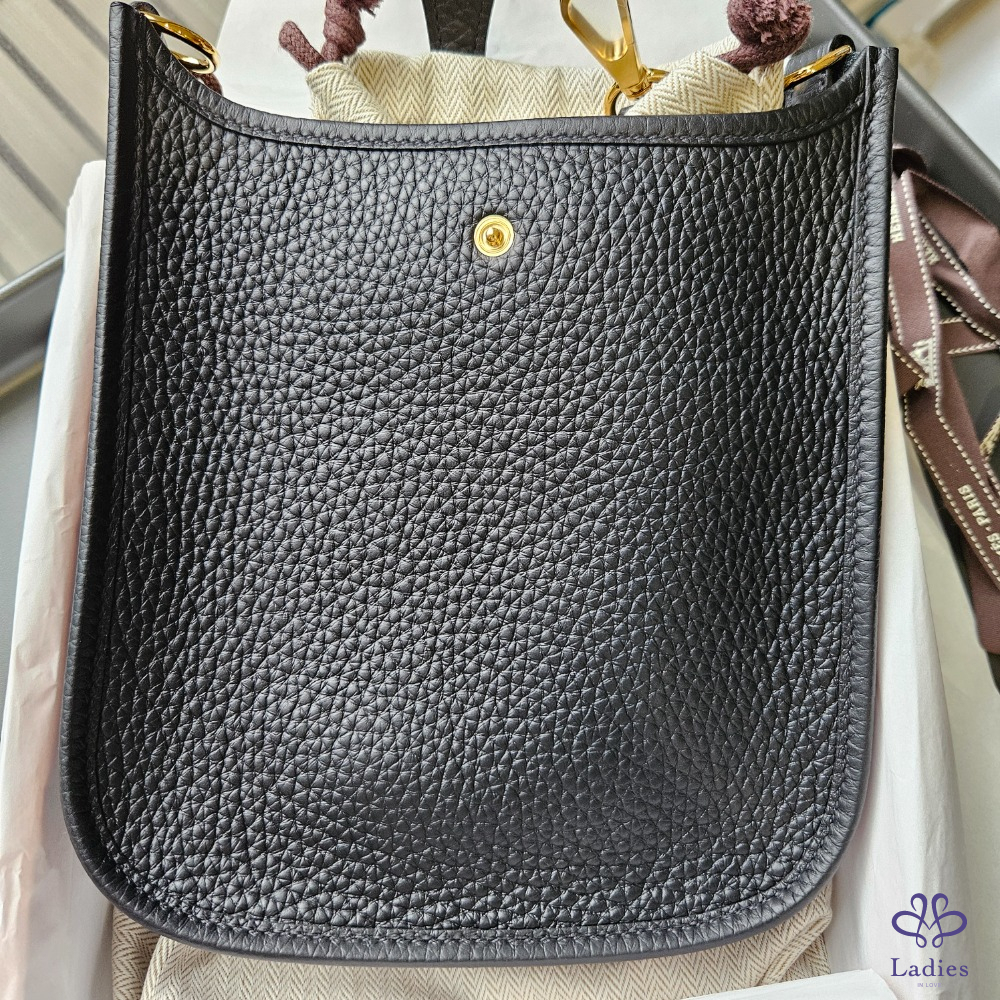 首頁 精品包包 全新 Hermes Mini Evelyne 黑色+金釦
