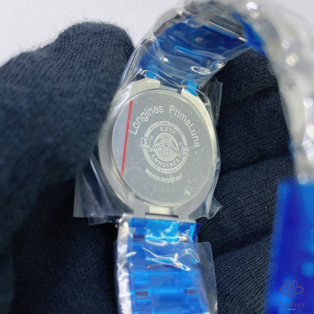 產品信息 【LONGINES 全新PrimaLuna新月系列腕錶】 #專櫃價6萬 新月系列是典雅與柔美風格的體現 腕錶均展現出能抵受潮流衝擊的美態 L592自動上鏈機械機芯 / 錶徑30mm 不鏽鋼鏈帶 / 藍寶石水晶鏡面 三重折疊式錶扣 / 藍鋼指針 / 日期窗 ⚜️整體品項全新未拆 ⚜️型號:L8.113.4.71.6 ⚜️附件:鐘錶公司保卡、原廠內、外盒 #A114050503