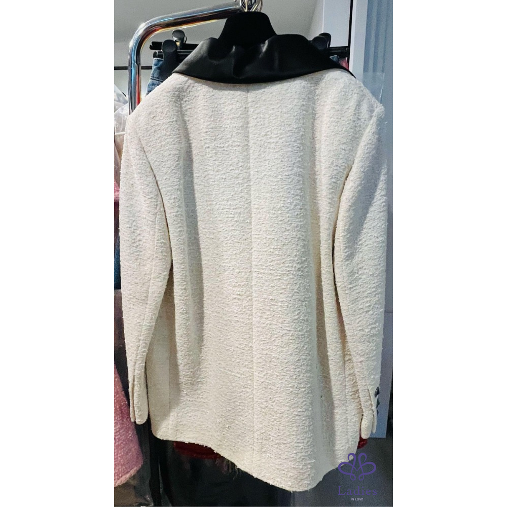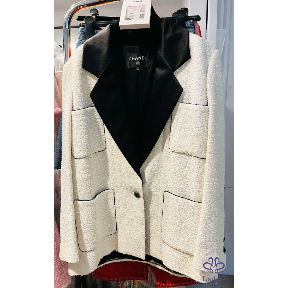 衣服的長度不含領子為71公分,肩寬約45公分,腰寬約54公分,袖長60公分。原價約$280,000左右。