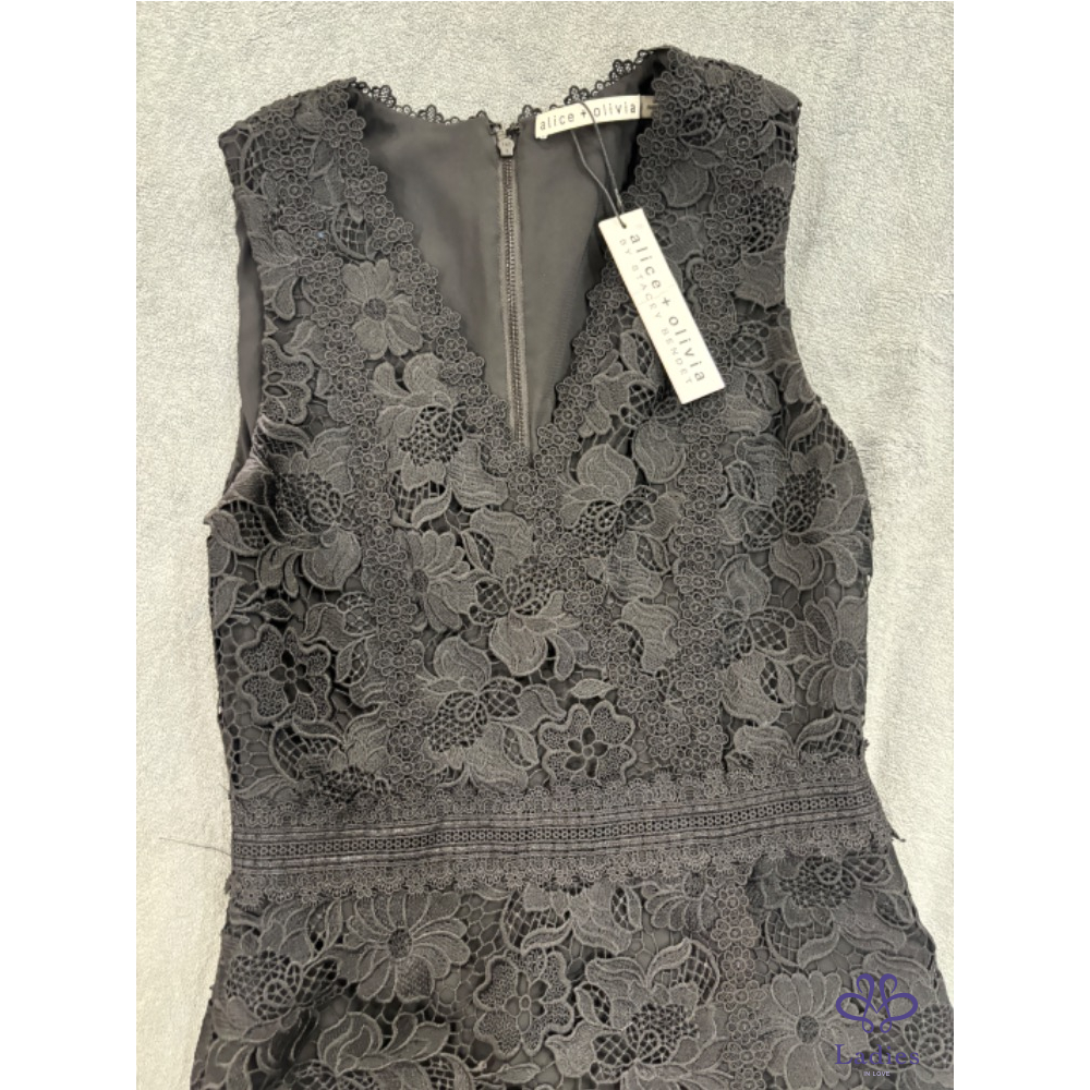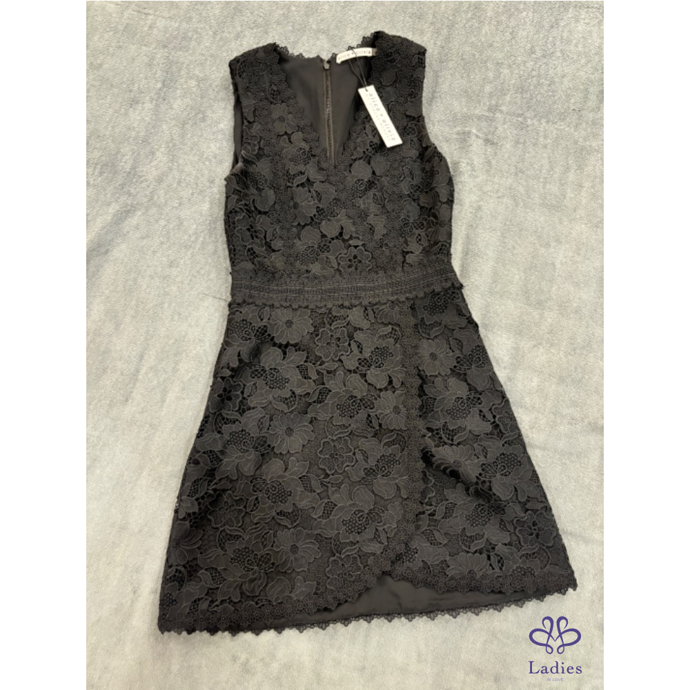 Alice + Olivia 經典黑 V領簍空蕾絲修身洋裝