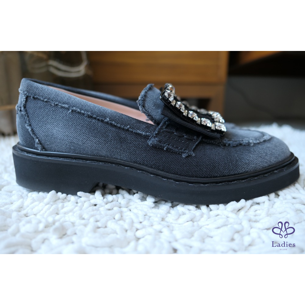 RV Roger Vivier 水鑽黑牛仔樂福鞋 尺寸:37