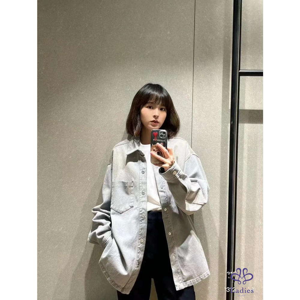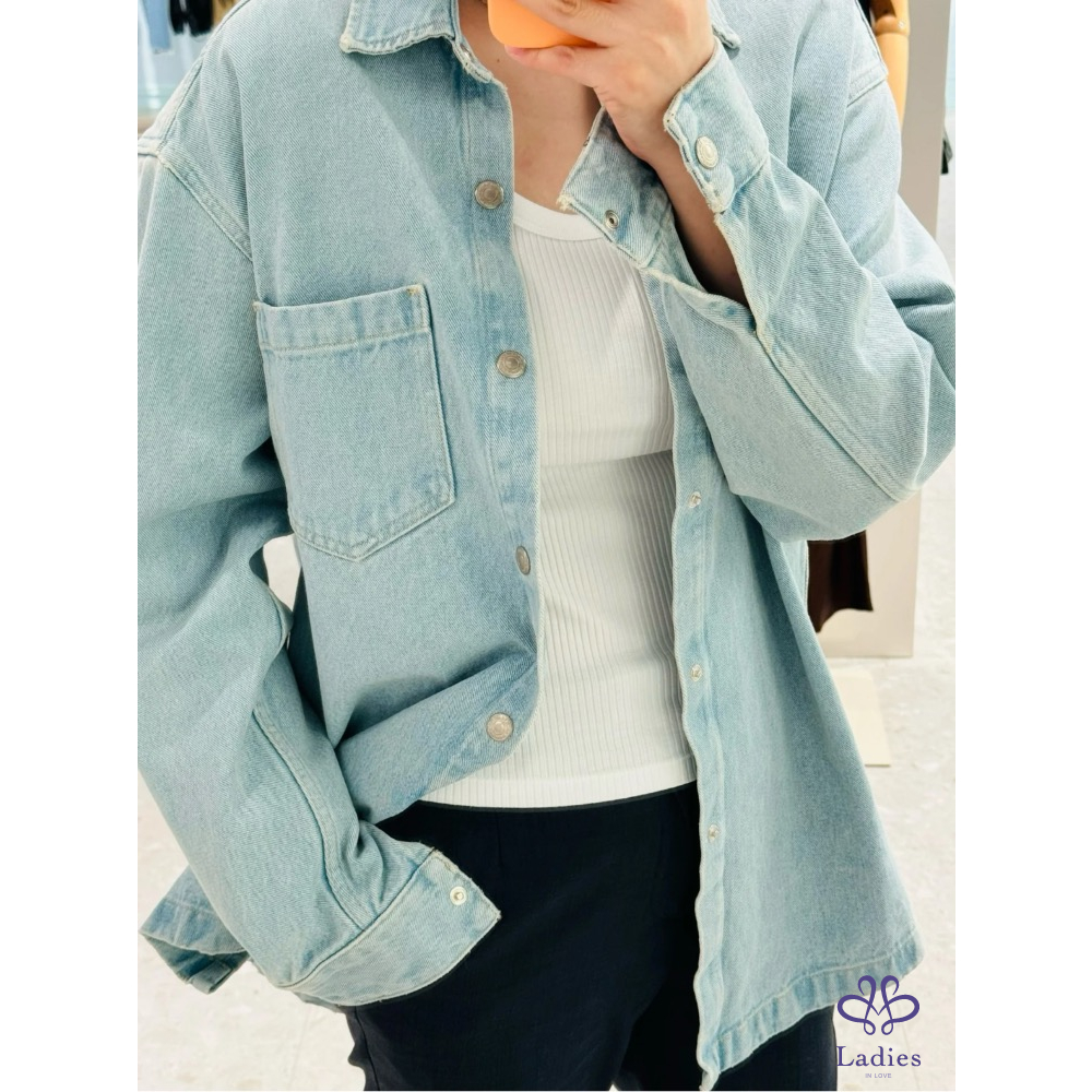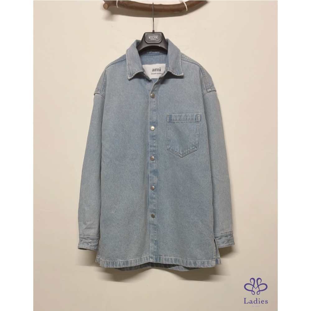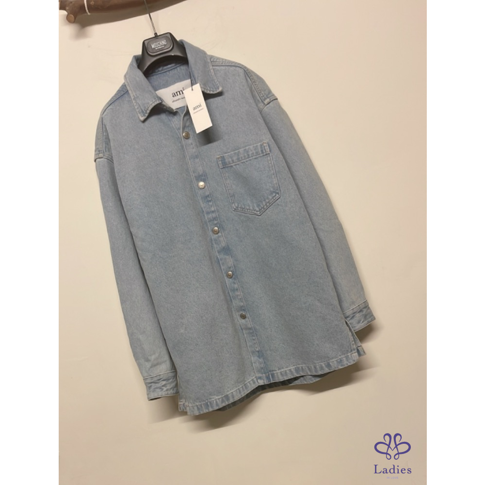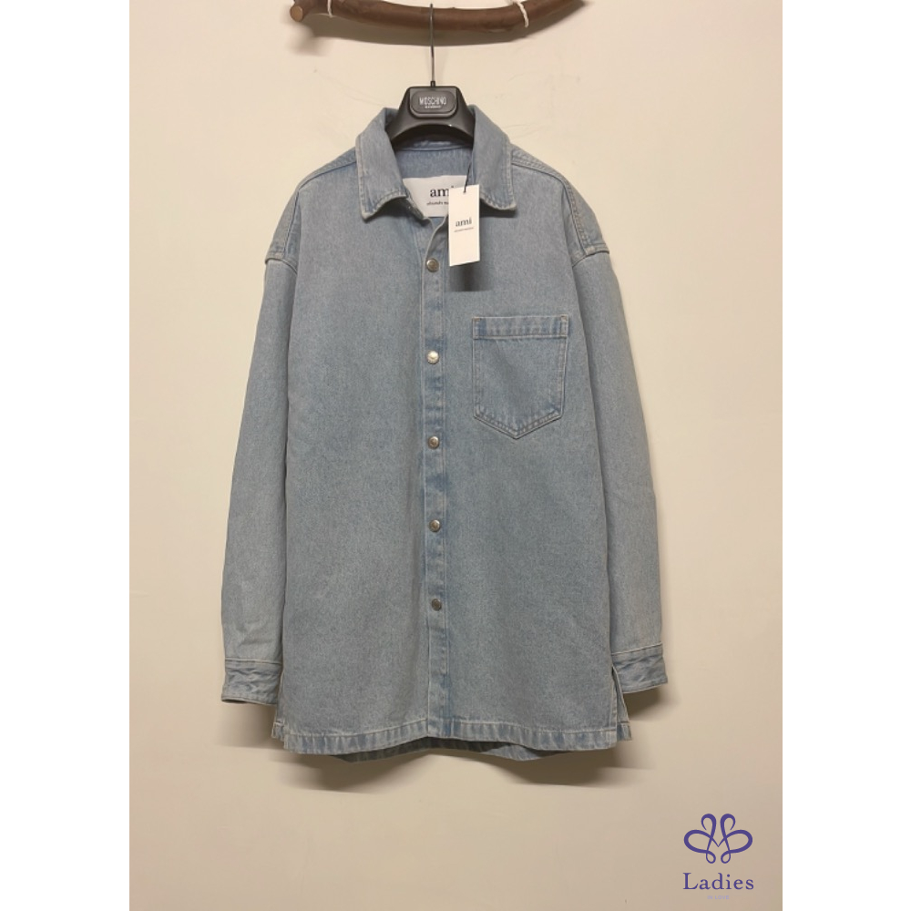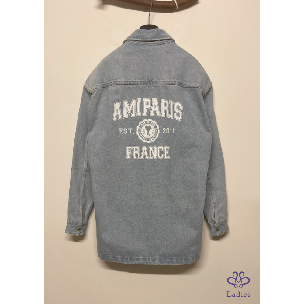 首頁 精品服飾 全新 AMI Paris 學院風徽章淺藍色牛仔外套