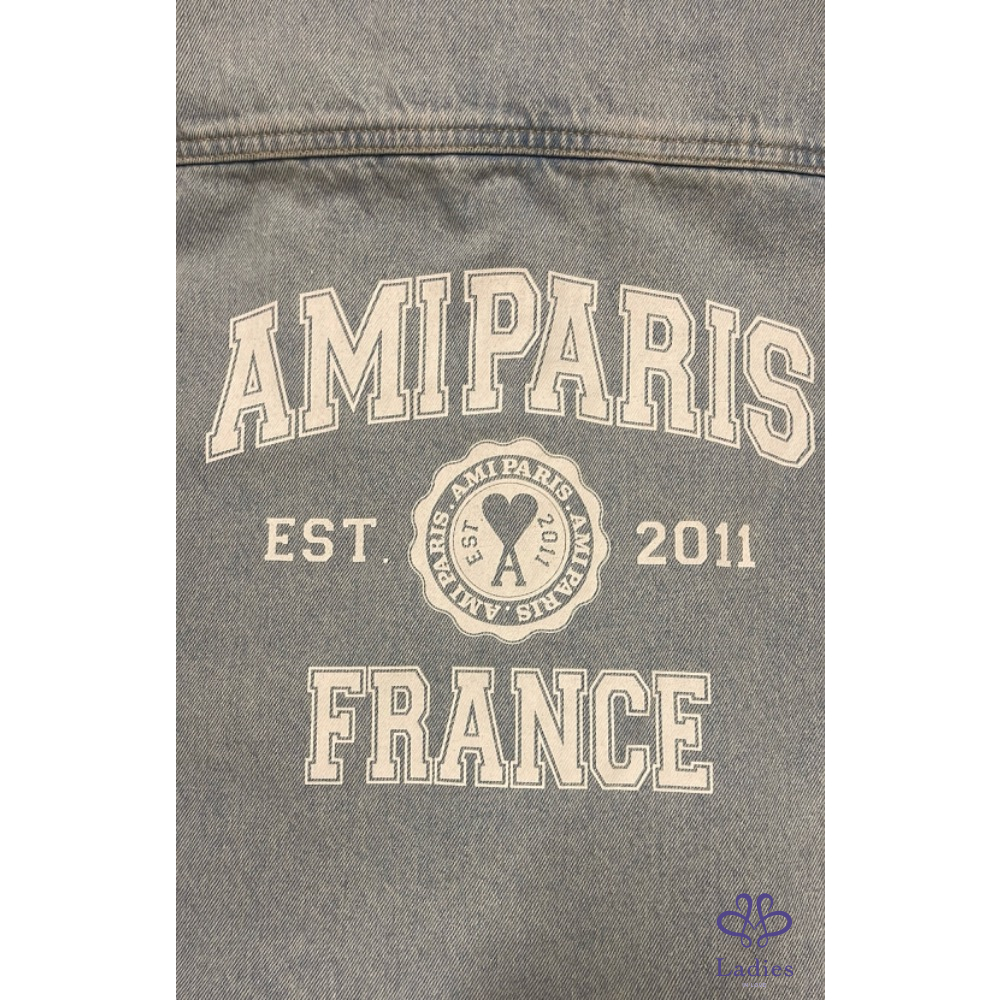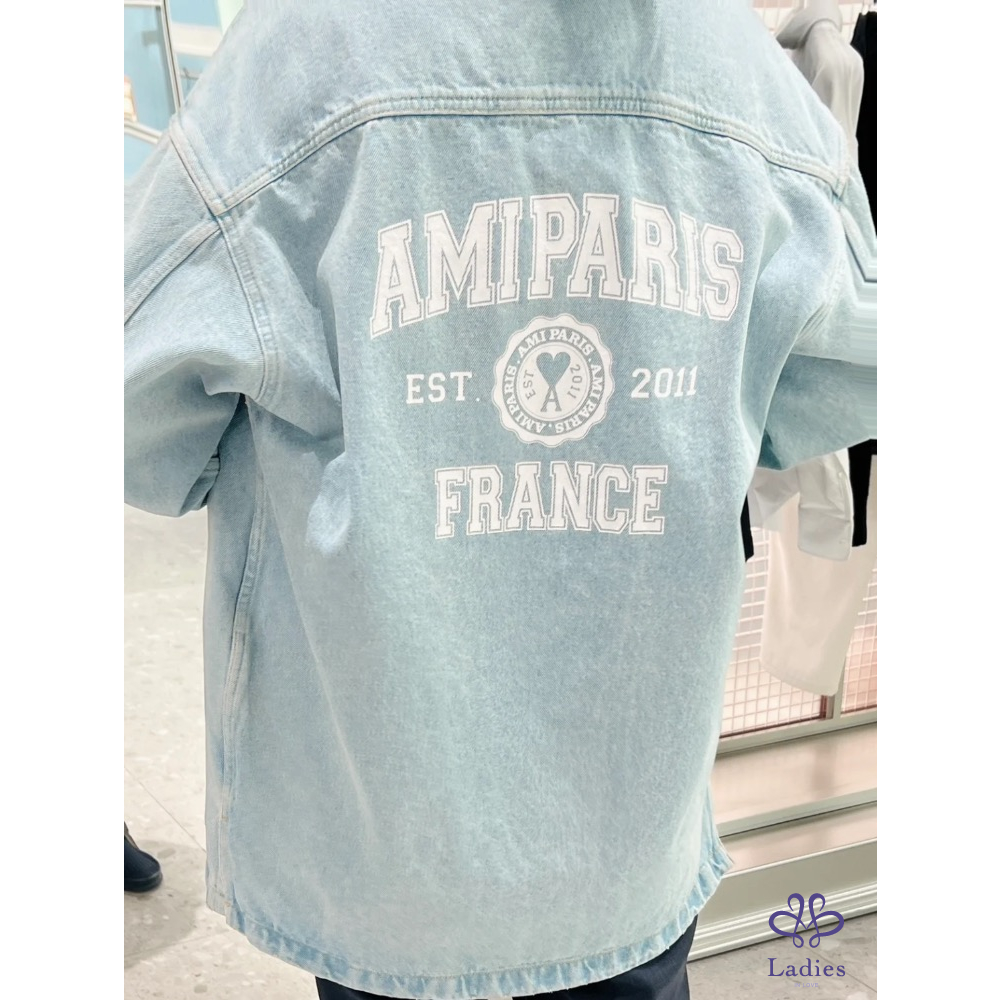 全新 AMI Paris 學院風徽章淺藍色牛仔外套
