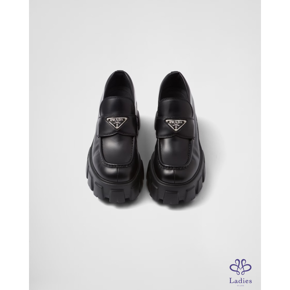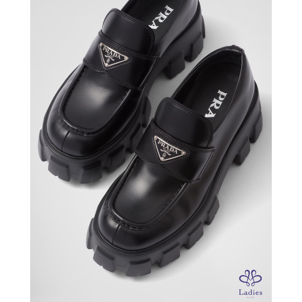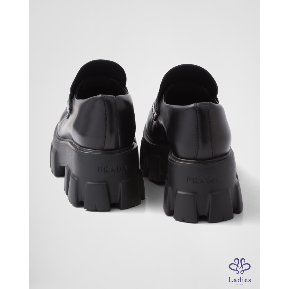 Monolith無帶便鞋選用Prada優雅而具標誌性的拋光皮革,以創新時尚的方式重塑經典Penny Loafer便鞋。鞋履的名字源自其厚實的橡膠鞋底,呈現一體成型的雋永設計,薈萃別具一格的研究成果、創新意念及風格。