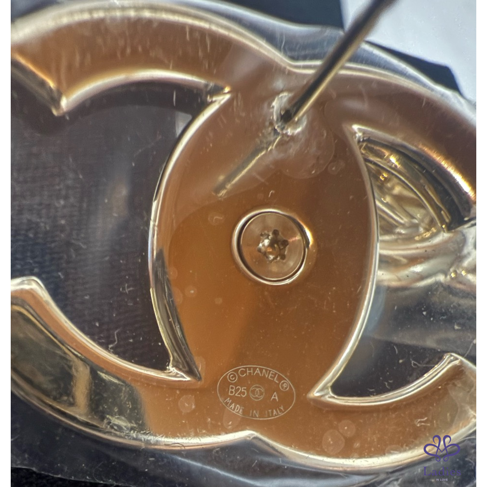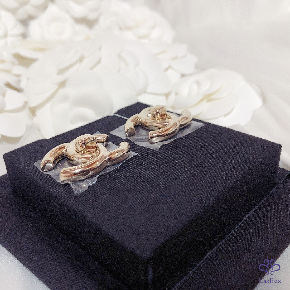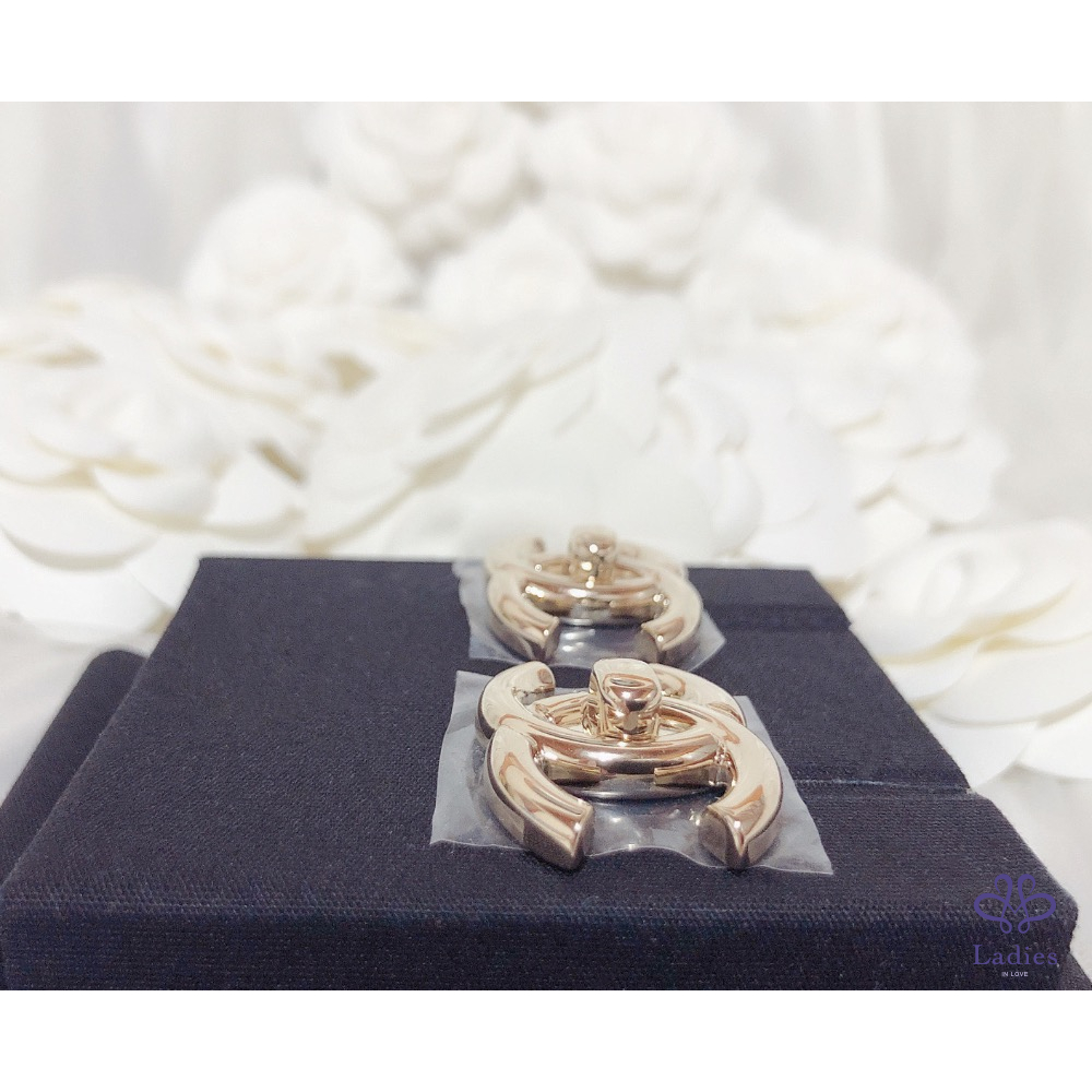 CHANEL 香奈兒 小香 25A 淡金 書包扣 大雙C logo 針式 耳環 全新✨