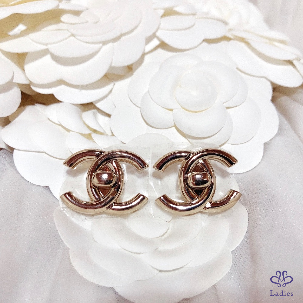 首頁 精品配件 CHANEL 香奈兒 小香 25A 淡金 書包扣 大雙C logo 針式 耳環 全新✨
