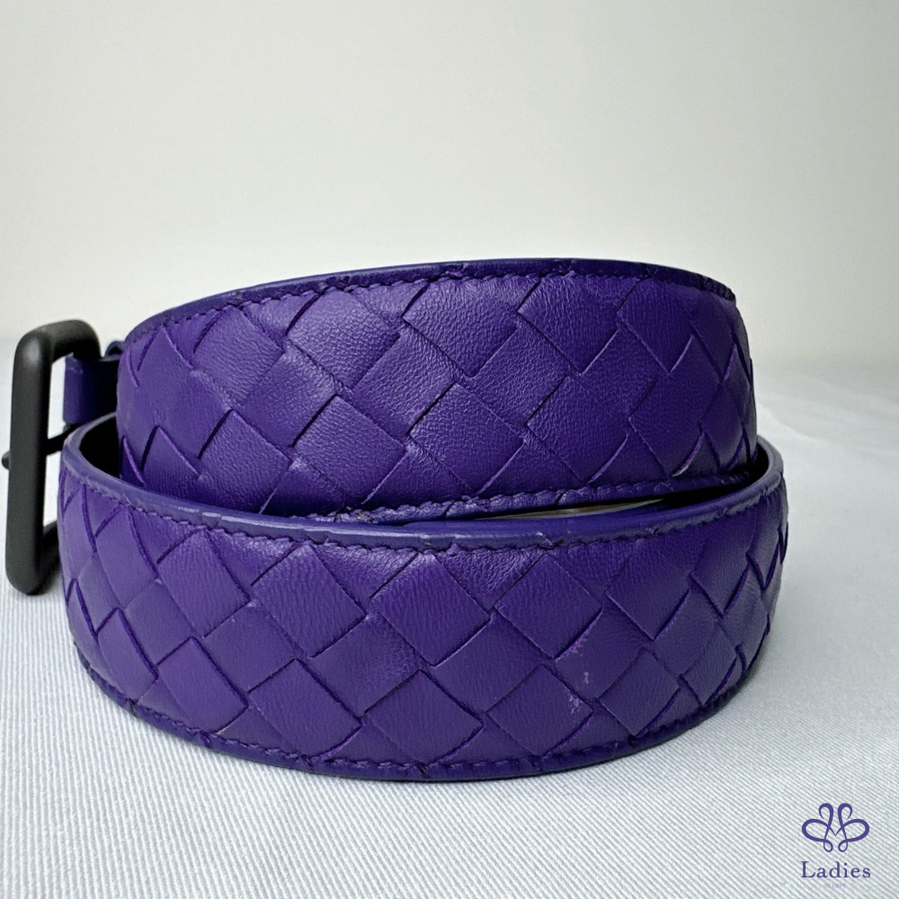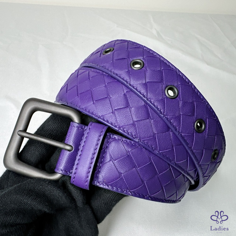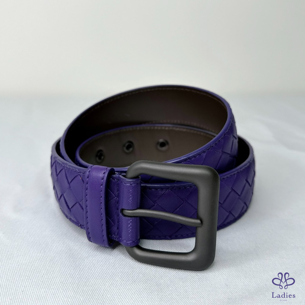 【BV 紫色編織皮帶】 經典編織皮帶,低調有格調 商務休閒都合適 金屬穿孔永不變形