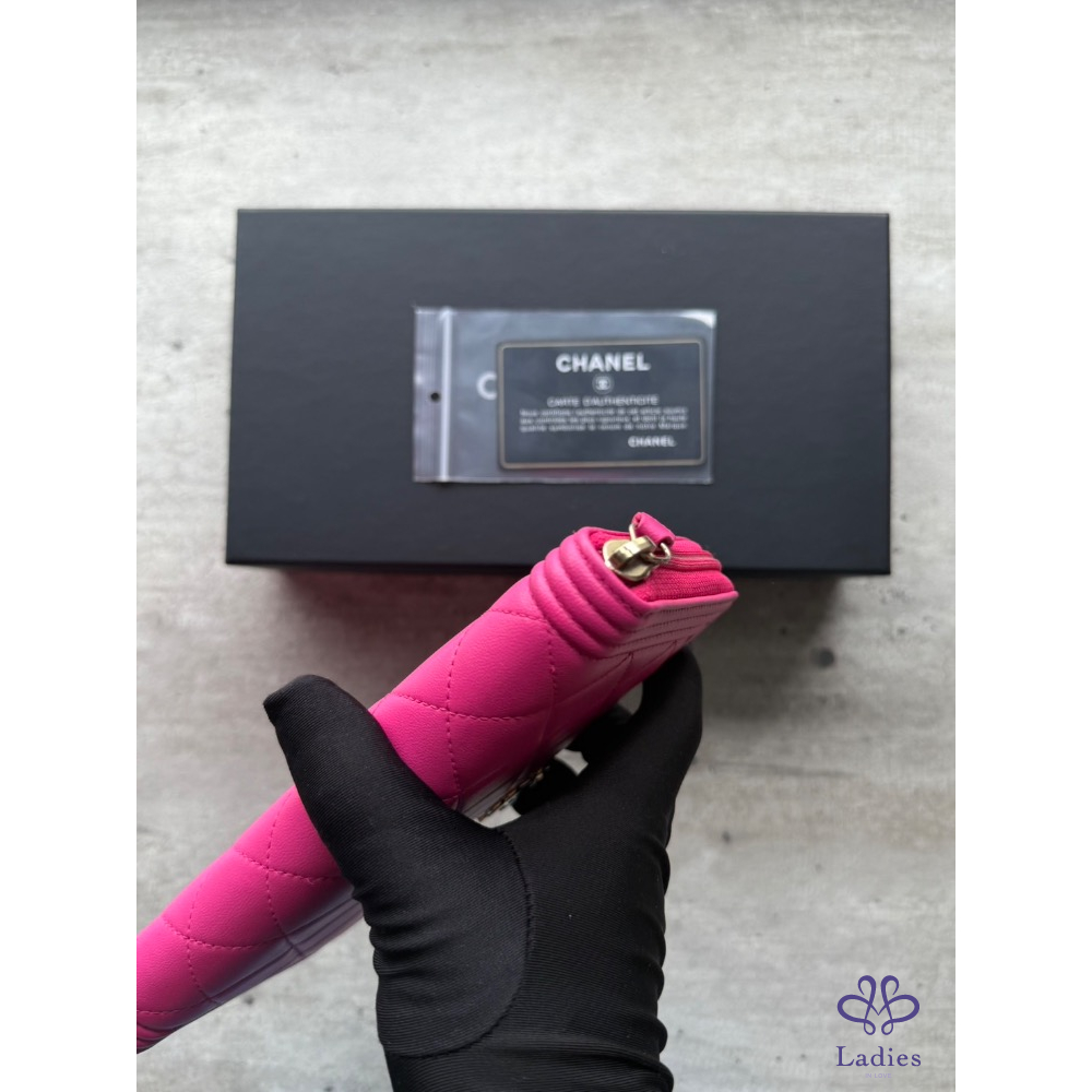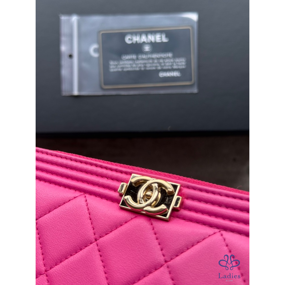 產品信息 Chanel經典熱賣缺貨款boy系列 色澤實體超美,搭配淡金扣 粉色女孩必入手的款式!日常約會超吸睛 整體的成新度極高,有97新,內裡乾淨 尺寸:10.5*19.5*2cm 配件:查碼圖(私訊)/保卡/盒裝 圖片已盡力拍攝高標請繞道謝謝