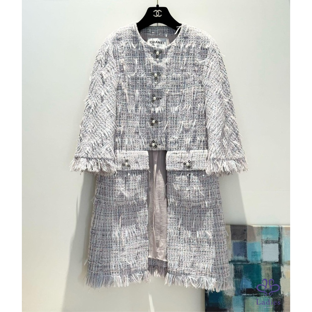 收藏款 近年runway秀款 CHANEL Lesage Tweed 絕美超級經典珍珠logo釦夢幻毛呢長大衣