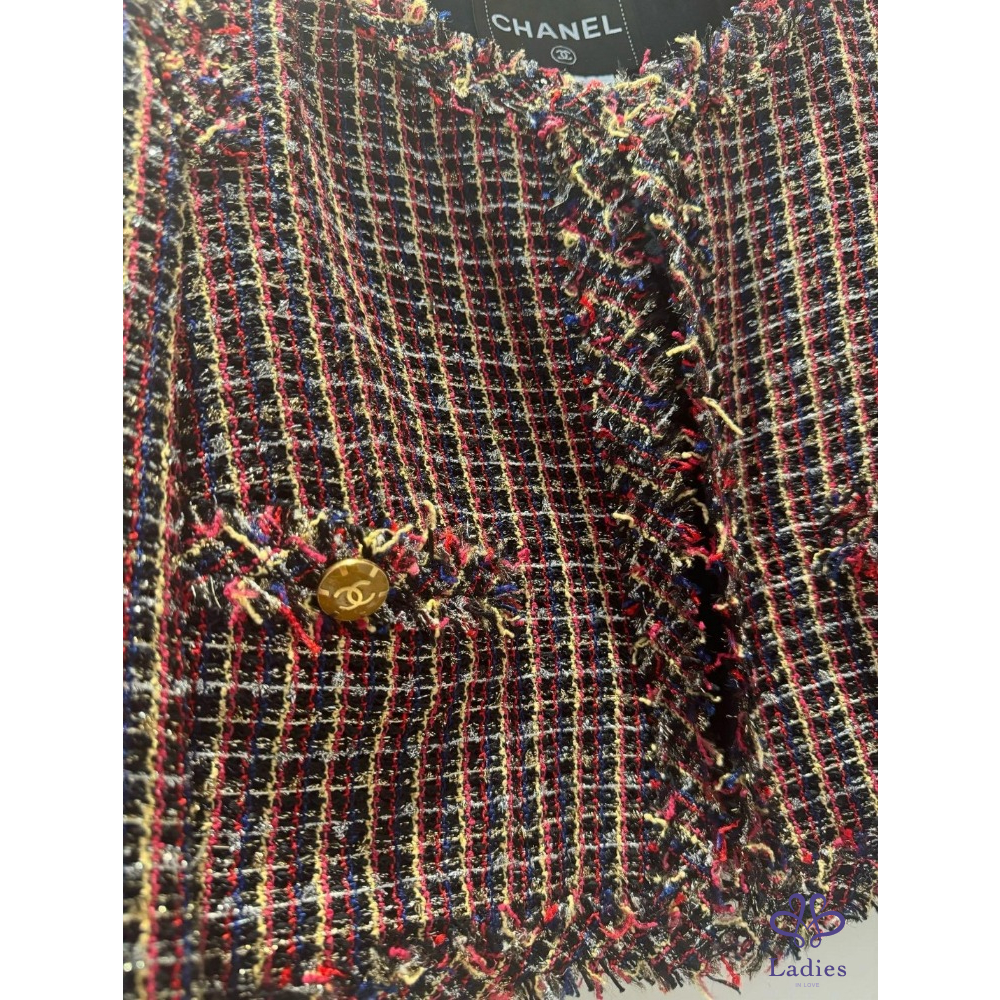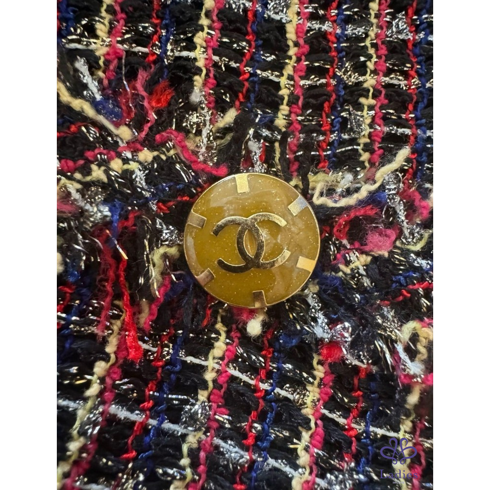 CHANEL Multicolor Tweed runway秀款 絕美超級經典logo琺瑯釦織金銀線鬚邊毛呢外套