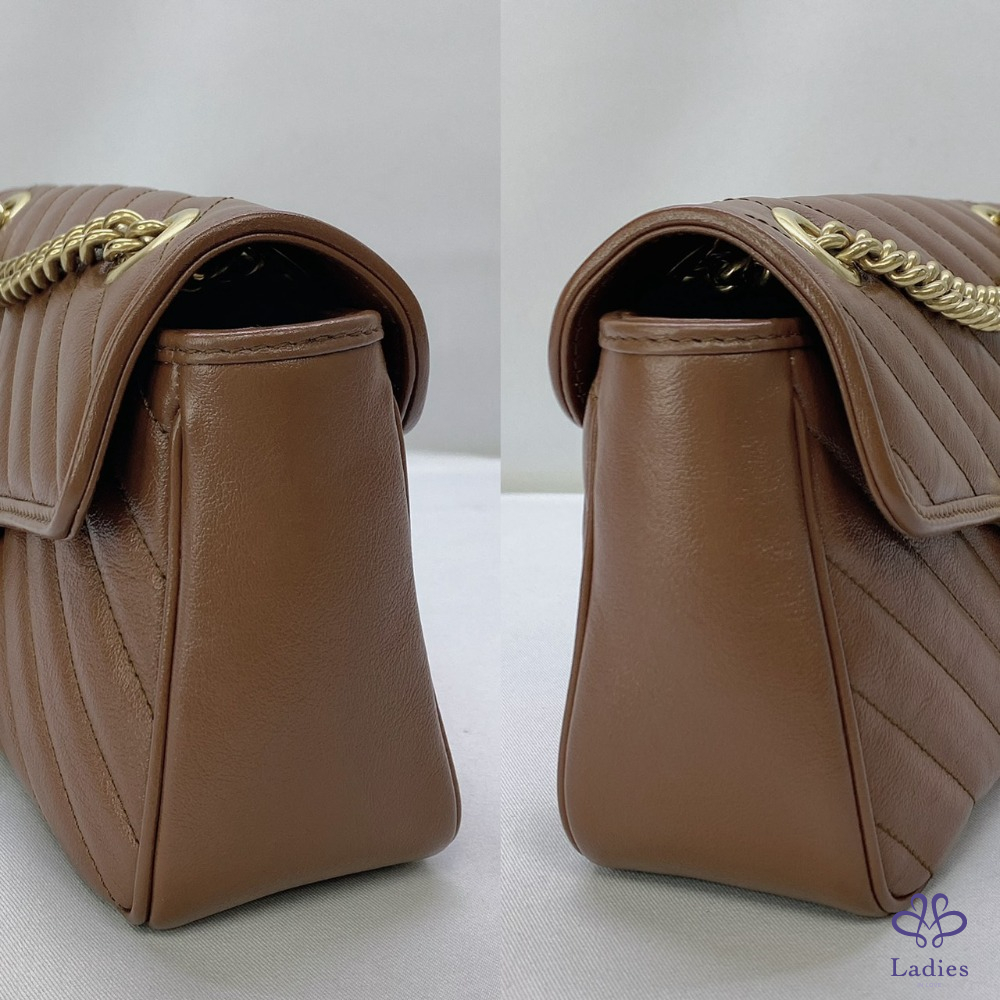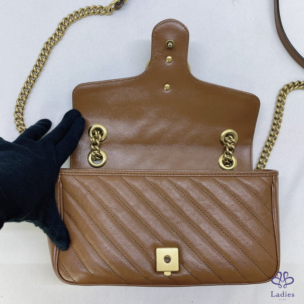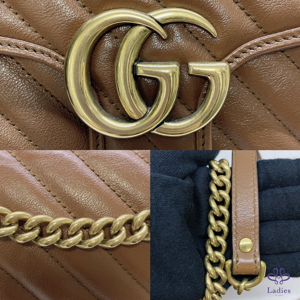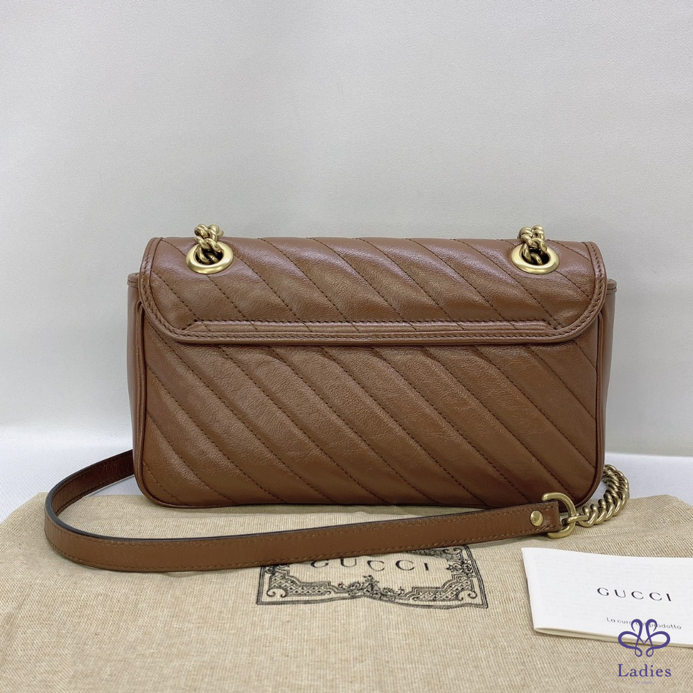 產品信息 【GUCCI GG Marmont棕色牛皮雙鍊肩背包】 高辨識度復古銅金雙G釦飾🤎 精緻斜紋絎縫時尚與休閒並存 可調整背帶,亦可斜肩背、手提 ⚜️整體品項9成新,二手商品均有正常使用/存放痕跡 ⚜️型號:443497 ⚜️尺寸:17x26x7cm ⚜️附件:防塵袋、卡冊 #A114061101