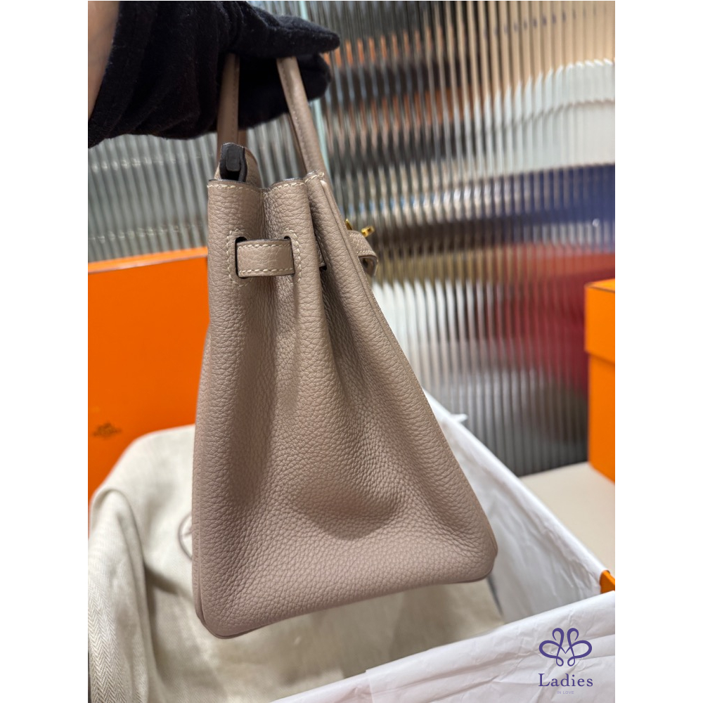 產品信息 HERMÈS Birkin25 鳻鳩灰 T金釦 #超甜直購56w含運 早上才在跟超資深馬場的客人 在討論都配不到鳻鳩灰鱷魚 然後ㄧ口同聲的說普皮就很少了 合況鱷魚皮 這顆是昨天到的 也是資深馬場阿姨釋出(15年以上沒斷過那總 真的超厲害薑 還是老的辣 9新 up 四角無磨內裡乾淨 (塵套有些續污漬 附盒 塵套 台灣購證