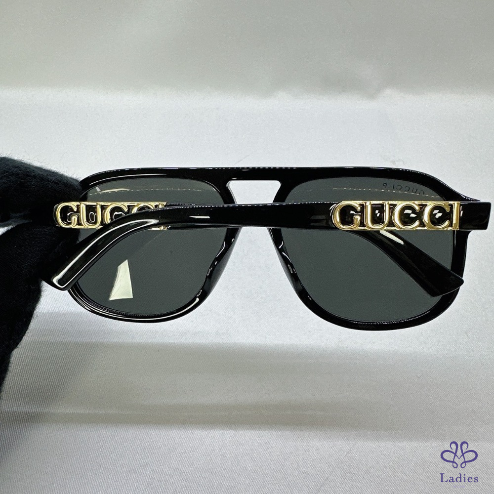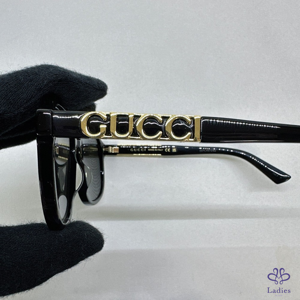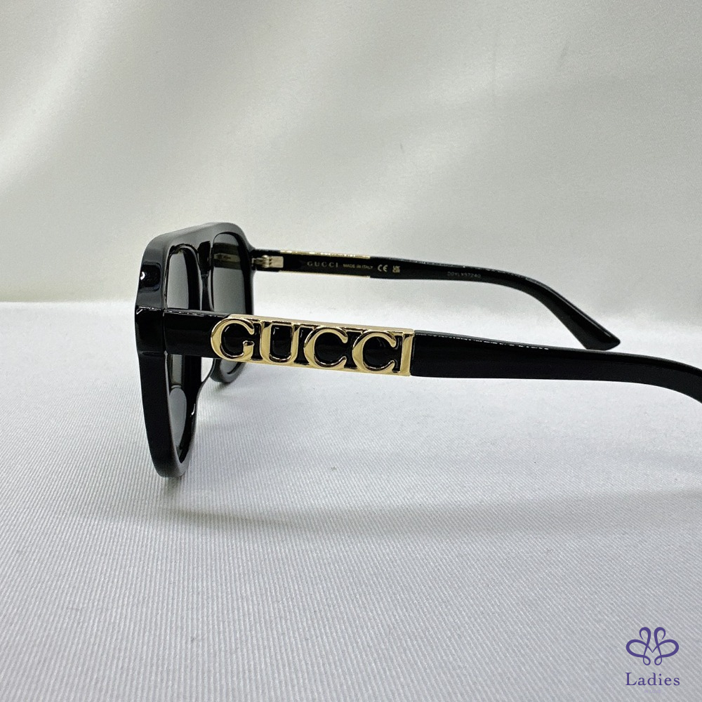 【GUCCI 黑膠框金色大LOGO墨鏡】
