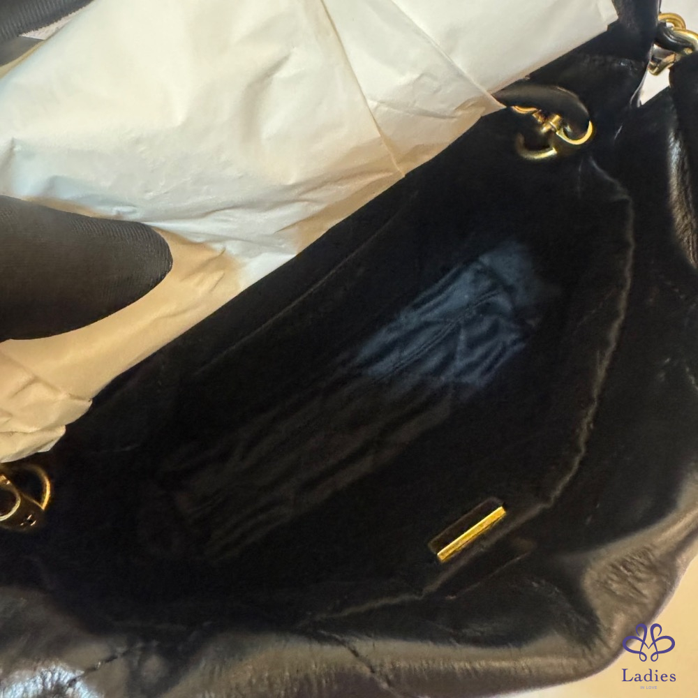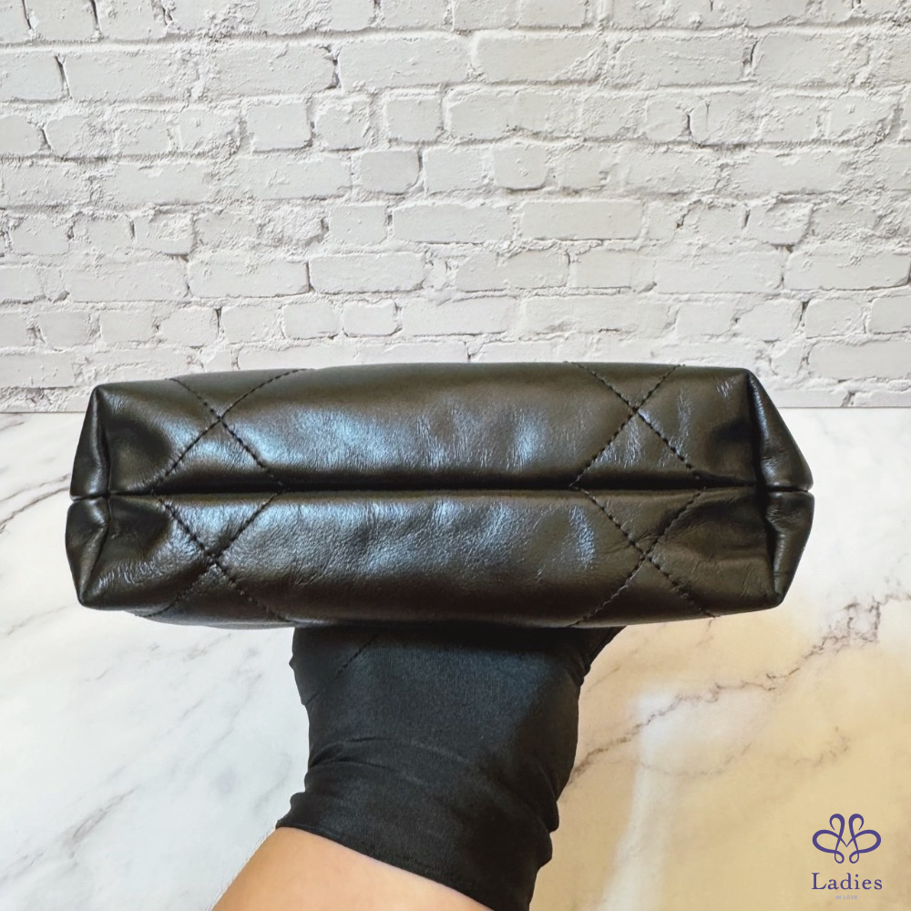 Chanel 22bag mini 黑金太好看啦,包包皮質細膩,光澤感巨好。容量也是非常足夠,各種季節都能搭配。包身自重挺輕的,mini我覺得大小正正好。個人最喜歡一條鏈條自然垂下單肩的背法,真的是太好看了❤️🔥
