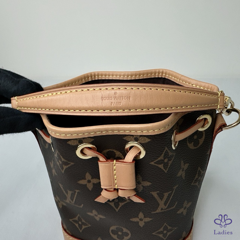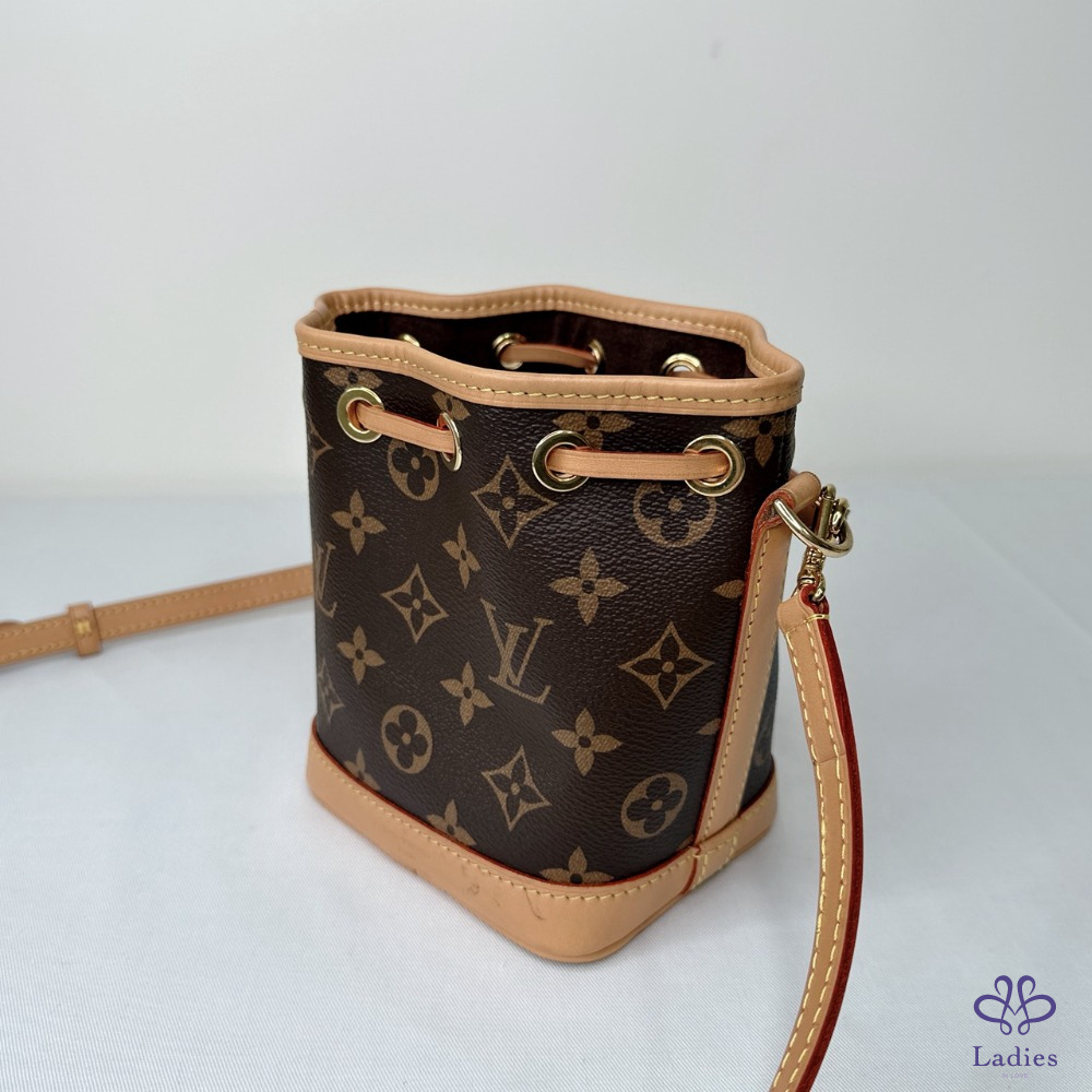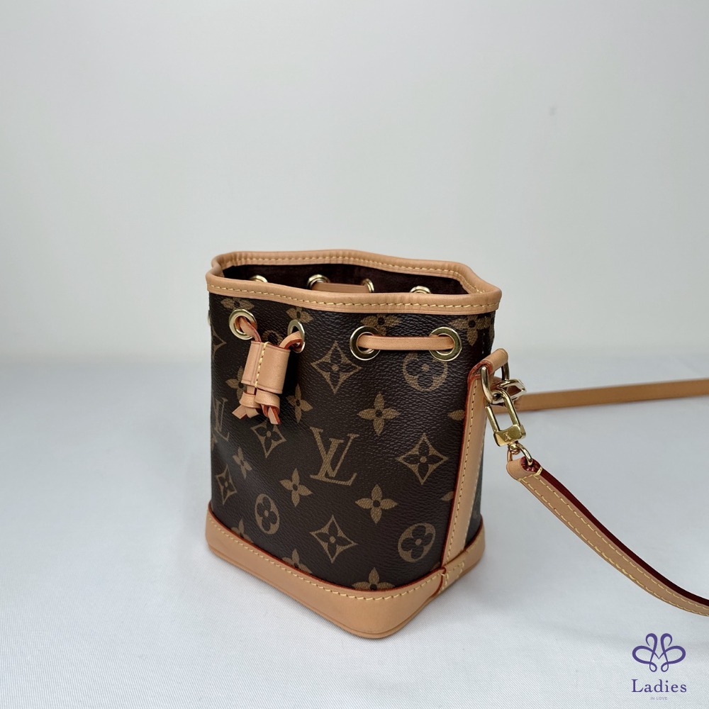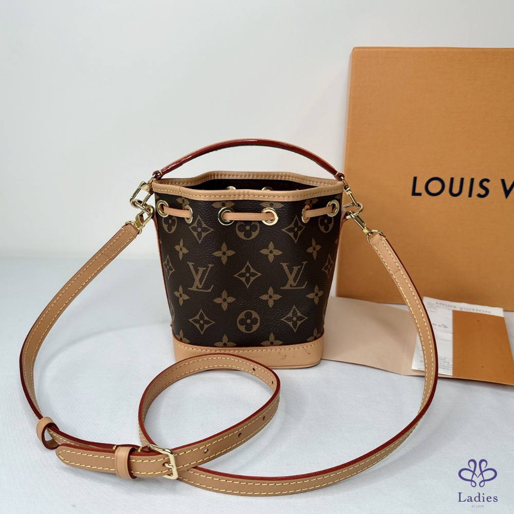 產品信息 【LV Nano Noe水桶包】 #專櫃漲價至6萬4 #櫃上缺貨款 Nano Noé採用綴有天然牛皮飾邊的Monogram帆布製作 設計可拆式手柄和可拆式調節長度肩帶 整體包況約9成新,二手商品均有正常使用/存放痕跡 型號:M81266 尺寸:13x16x10cm 附件:原廠盒、原廠手柄、原廠背帶 #B114060801