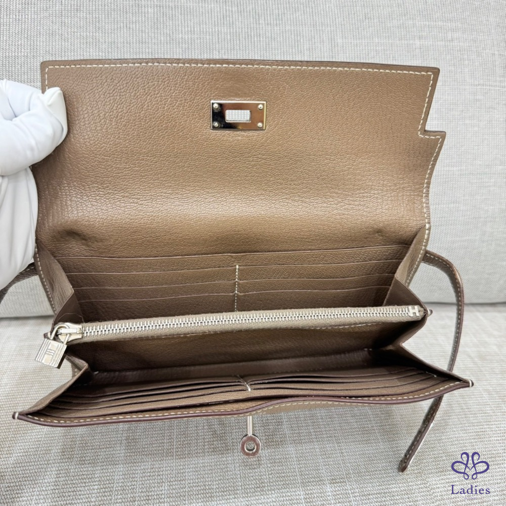 🛍️🛍️ 愛馬仕~Hermes Kelly 長夾 大象灰銀扣 山羊皮 T刻