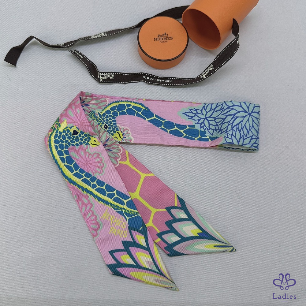 產品信息 【HERMES 全新Twilly長頸鹿絲巾】 #離櫃全新無使用僅拍照 以亮眼的粉色為底🩷 搭配長頸鹿與花卉圖案🦒 色彩繽紛活潑,增添俏皮與藝術氣息🥰 ⚜️整體品項9成9新,二手商品均有正常使用/存放痕跡 ⚜️尺寸:86cm ⚜️附件:盒子、緞帶 #A114051213