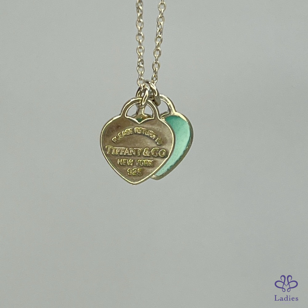 【Tiffany Blue琺瑯純銀雙心鏈墜】
