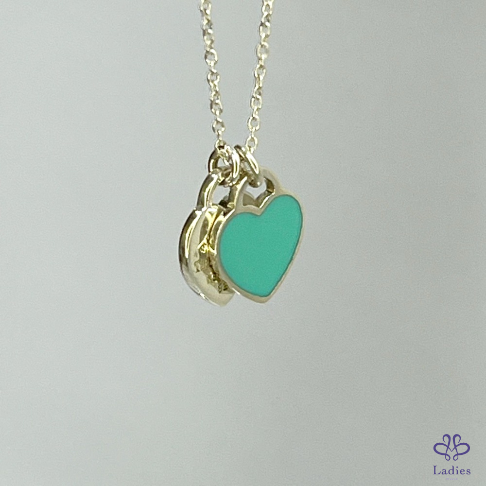 兩顆閃爍心形鏈墜,純銀配以Tiffany Blue琺瑯塗層