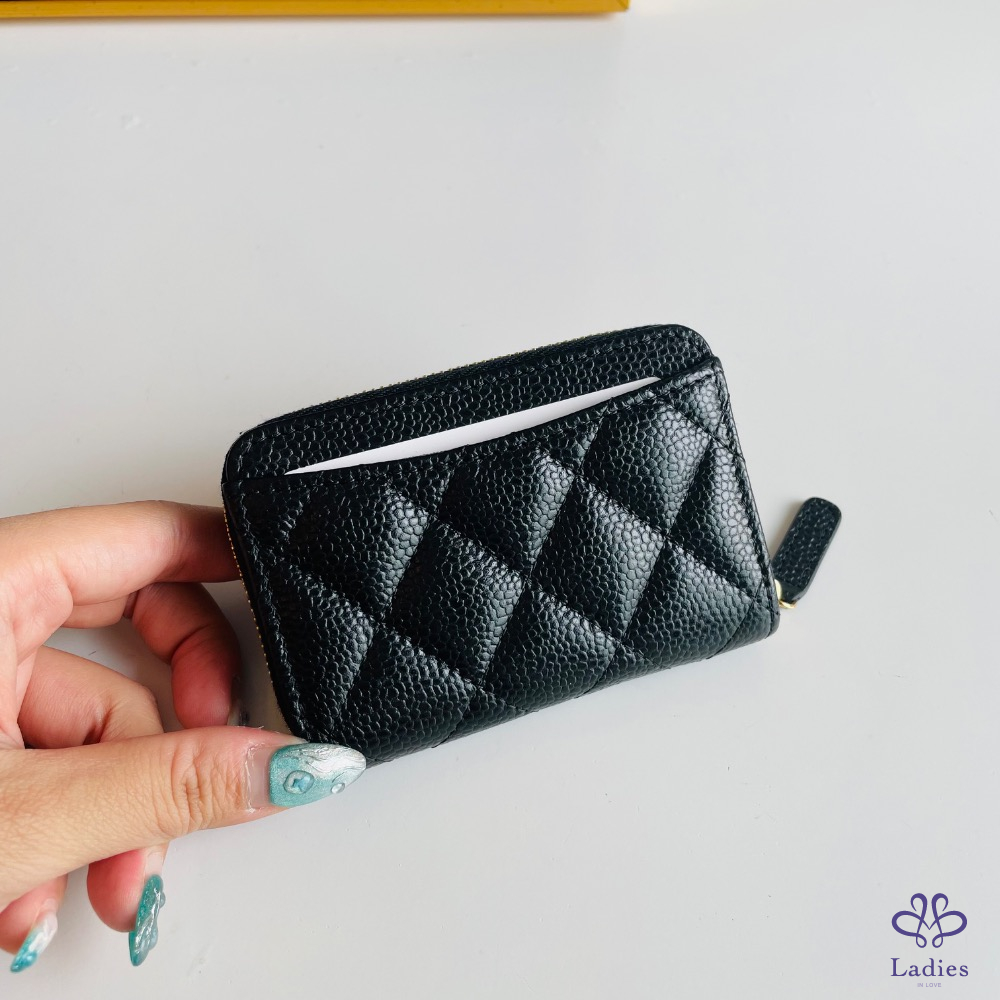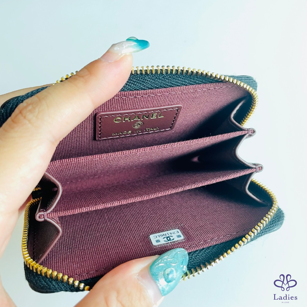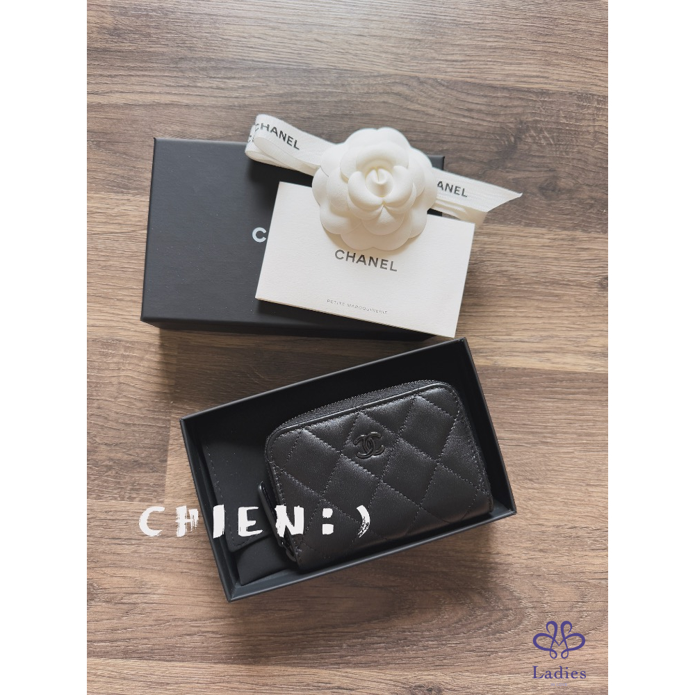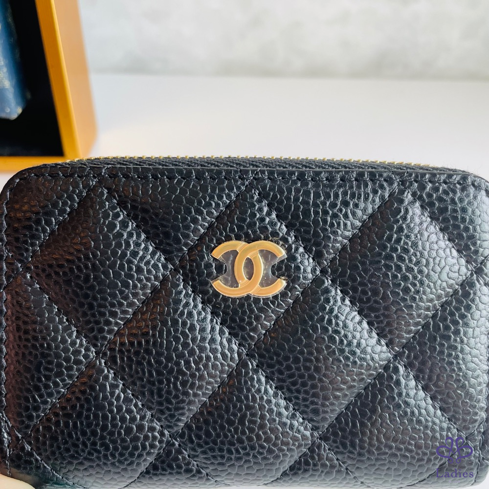 Chanel 拉鍊零錢包 黑色金釦 荔枝皮