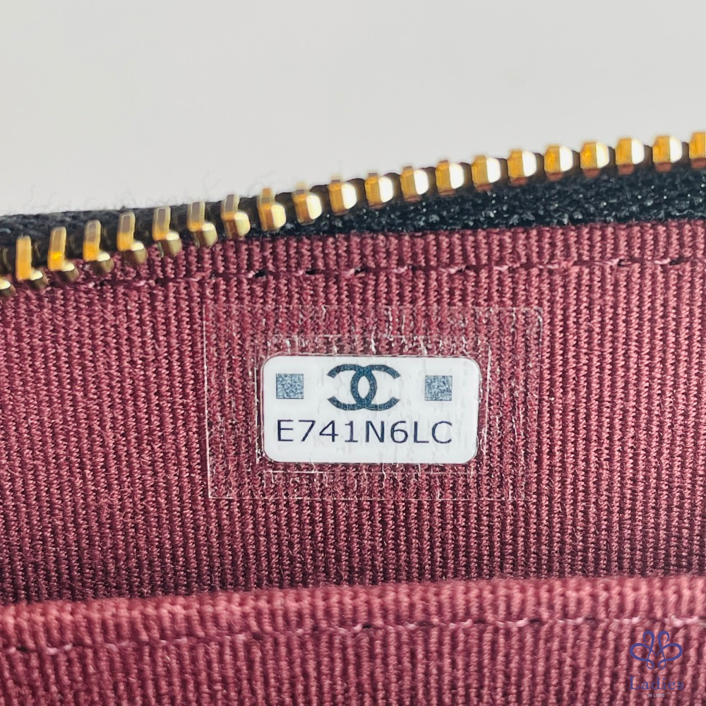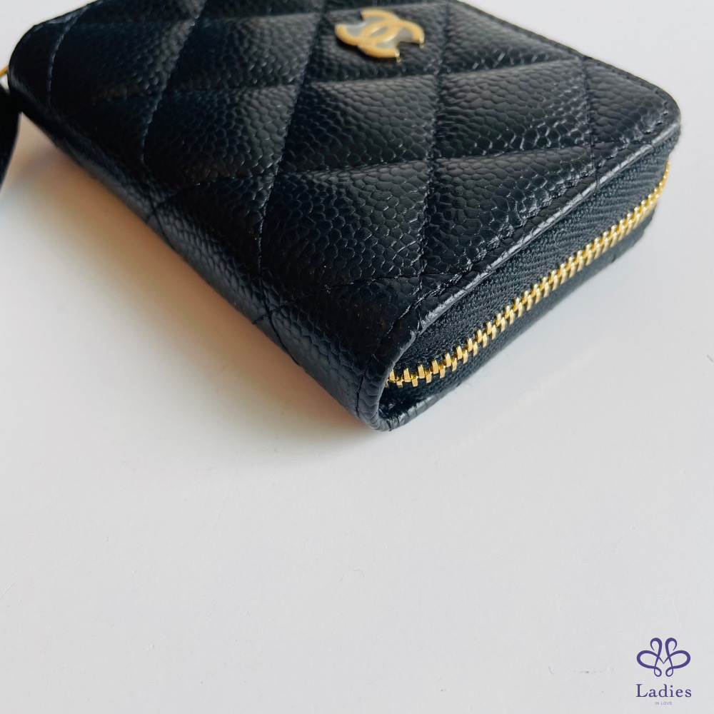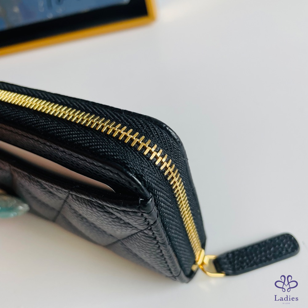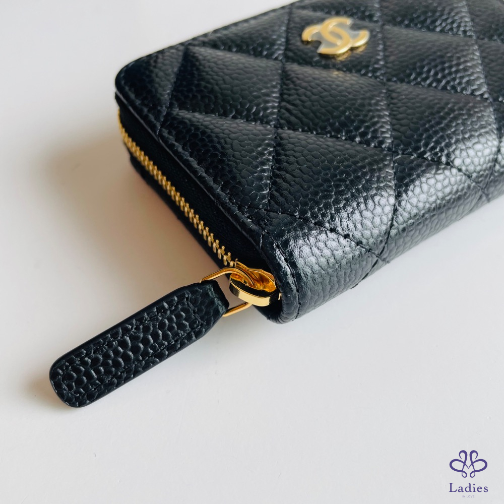 Chanel 拉鍊零錢包 黑色金釦 荔枝皮