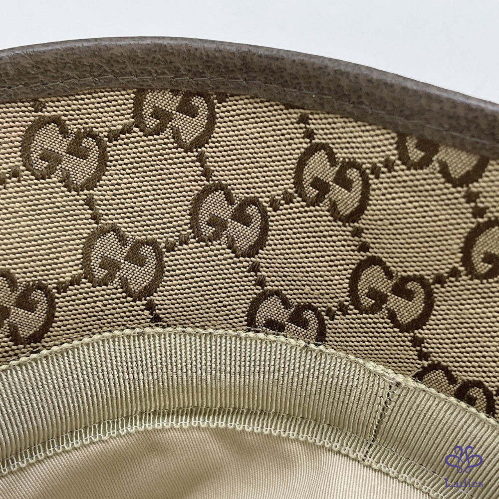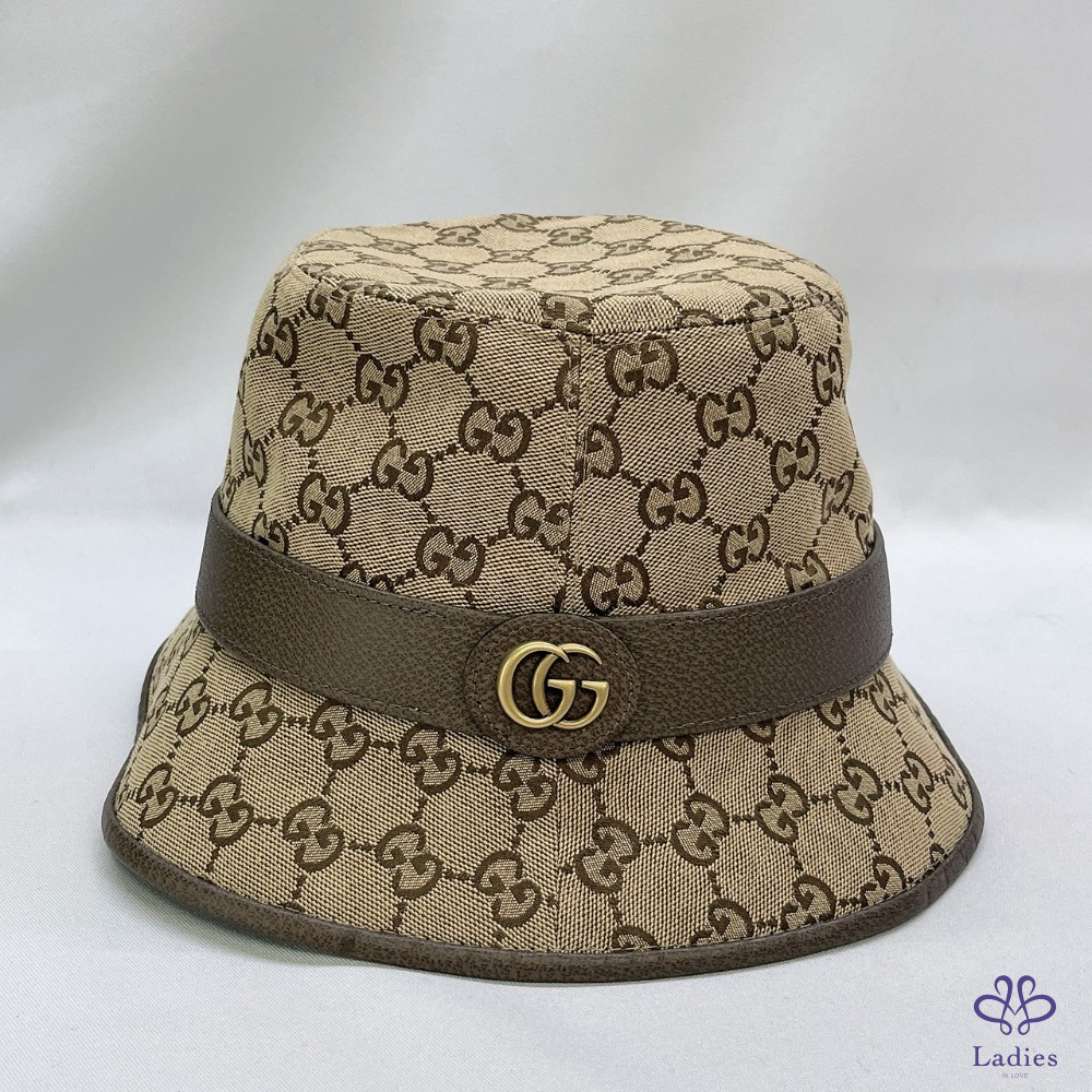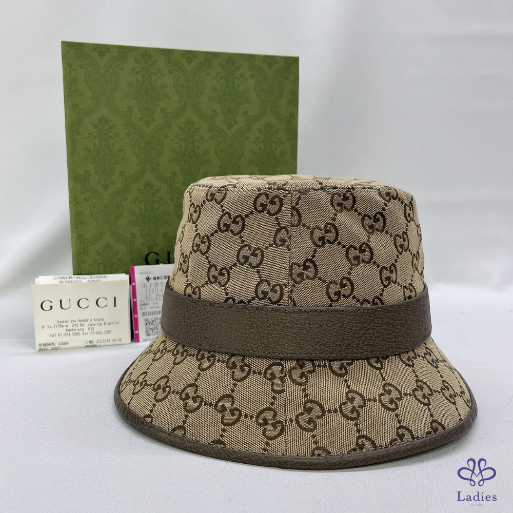 產品信息 【GUCCI 經典雙G LOGO百搭漁夫帽】 經典米色和棕色GG Supreme帆布 棕色皮革飾邊與標誌性雙G金屬配件 適合日常穿搭或增添造型感 ⚜️全新品 ⚜️型號:576587 ⚜️尺寸:59(L)cm ⚜️附件:購證、紙盒、發票 #A114062704