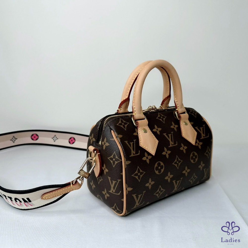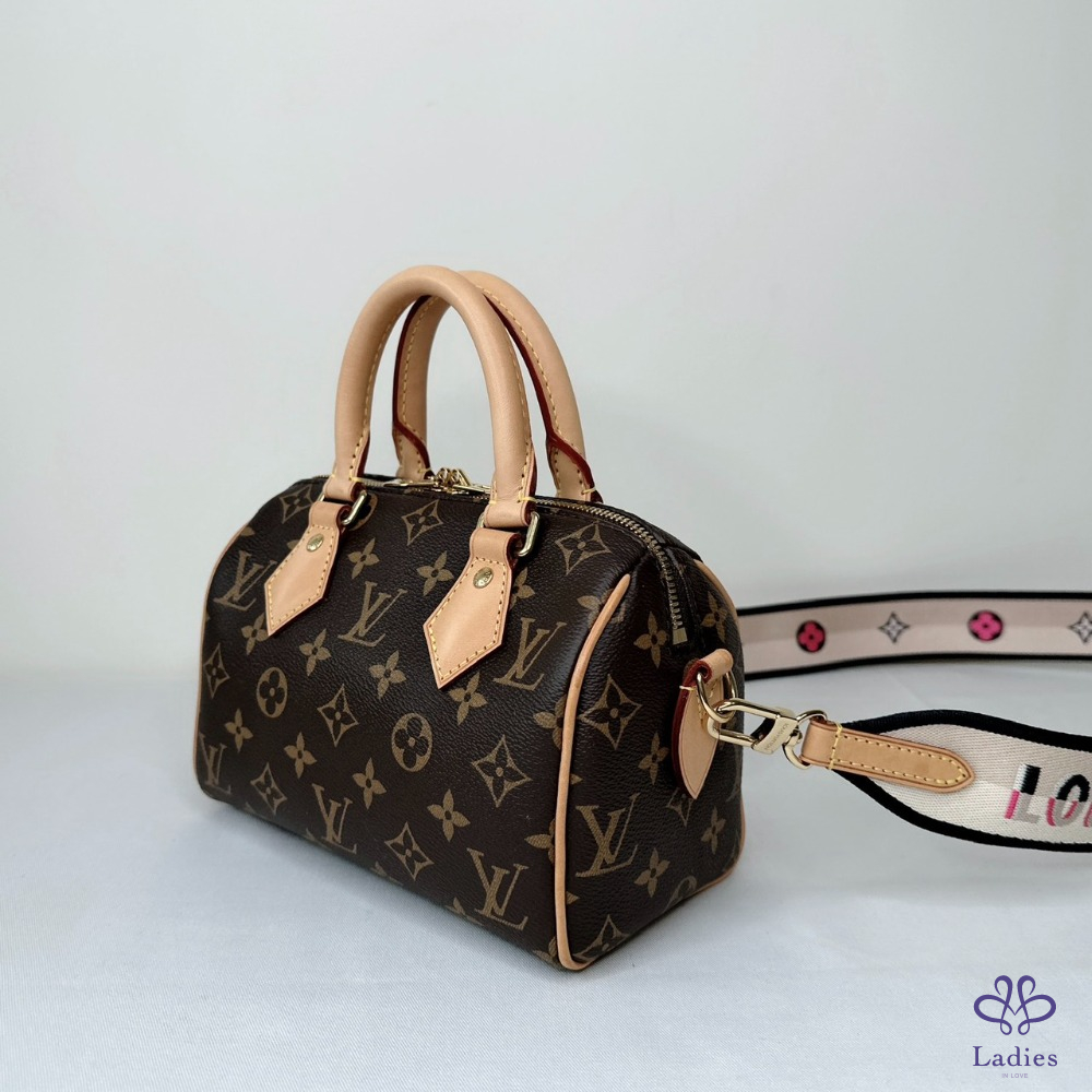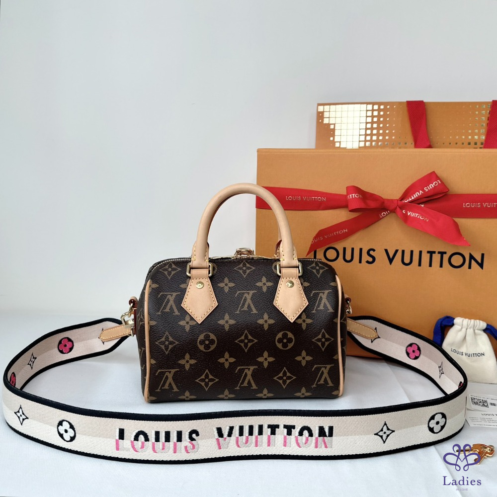 產品信息 【LV Speedy 20老花波士頓包】 #櫃上漲價約7萬6 不用多介紹,黑背帶市場熱門款 黃金通用尺寸 容量大小非常好裝 整體包況約9成5新,二手商品均有正常使用/存放痕跡 型號:M46234 尺寸:20.5x13.5x12cm 附件:原廠盒、原廠紙袋、原廠背帶、鎖匙組和防塵袋、緞帶 #B114061510