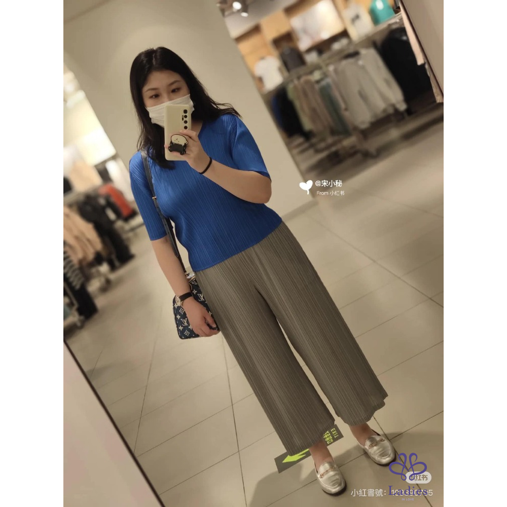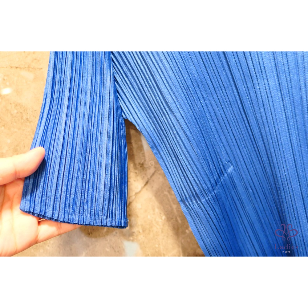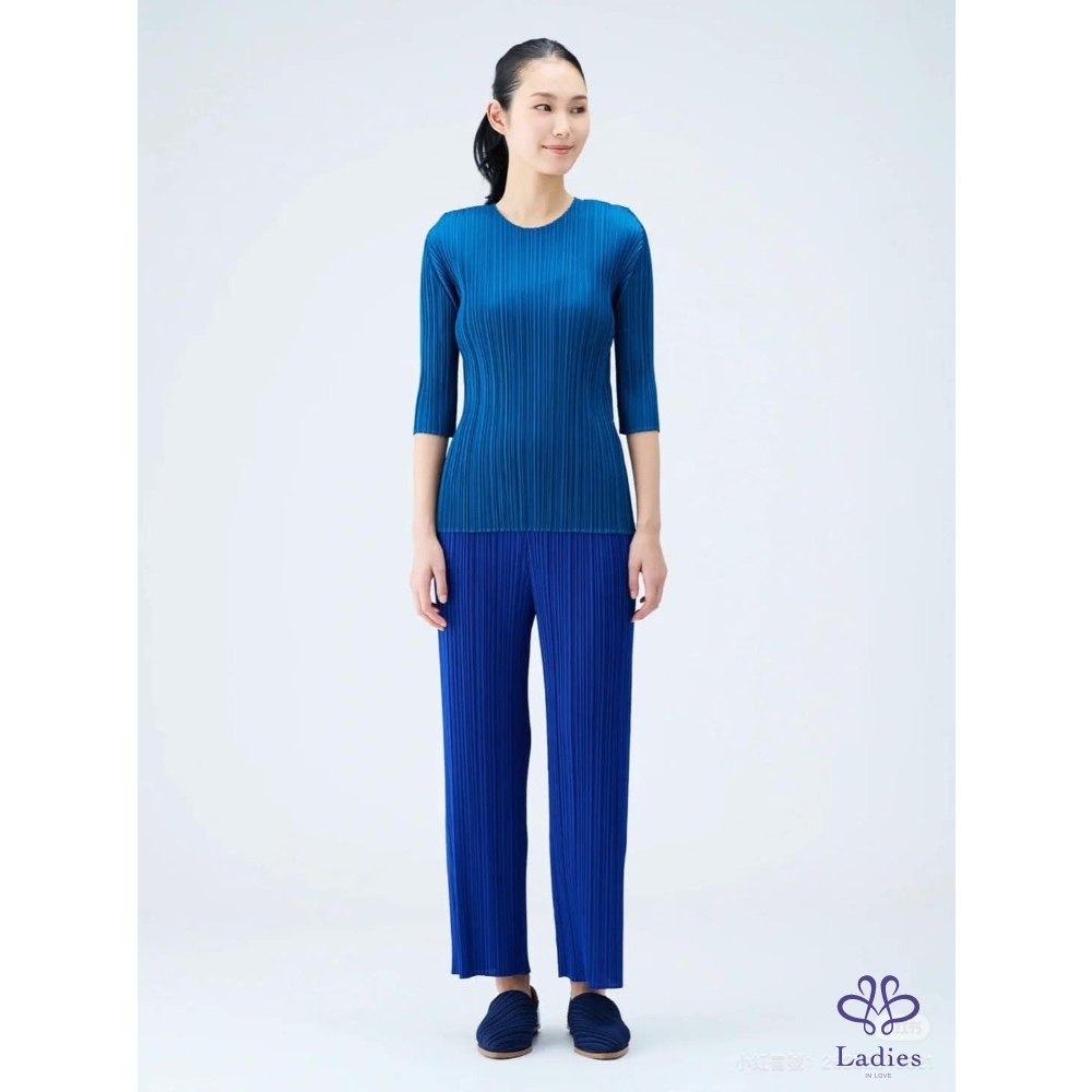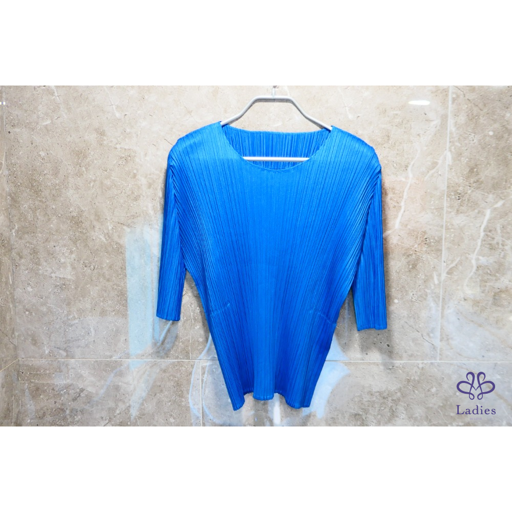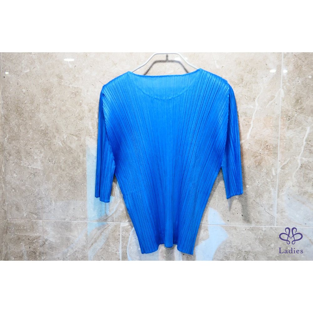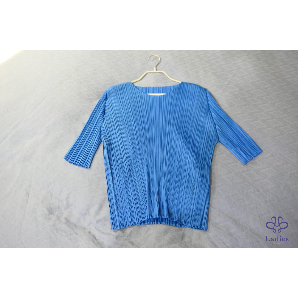 Pleats Please三宅一生 藍色圓領五分袖上衣