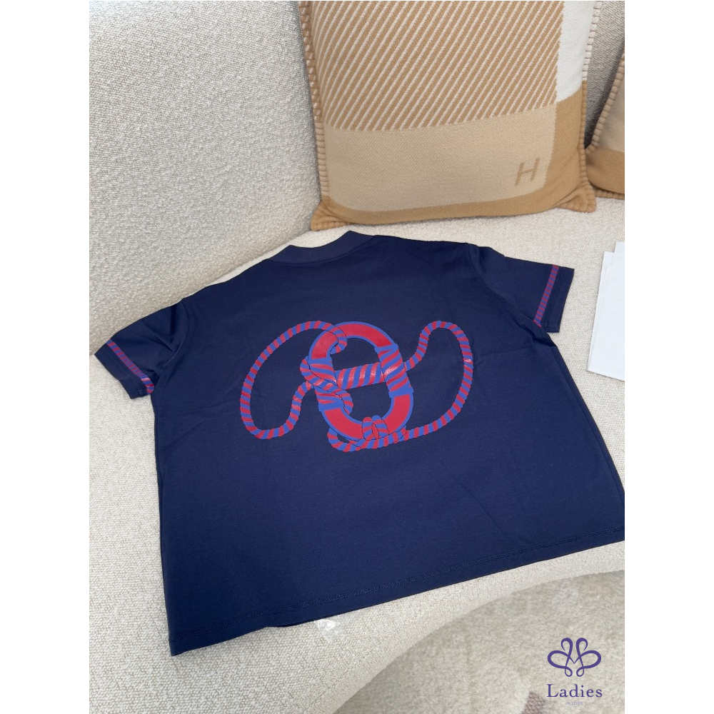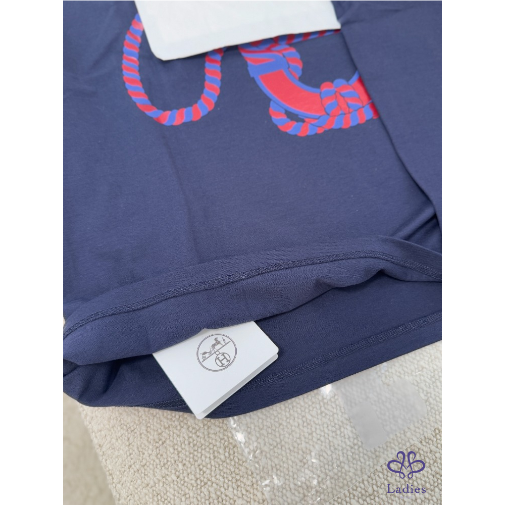 全新 Hermes 海軍藍圖紋印花寬版T恤