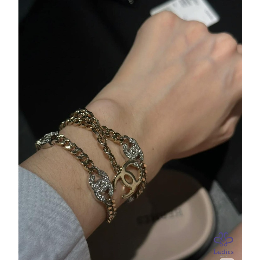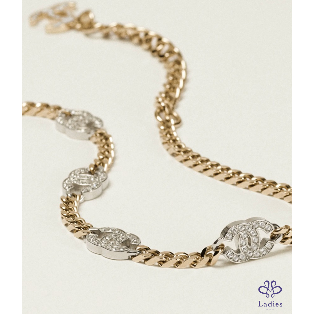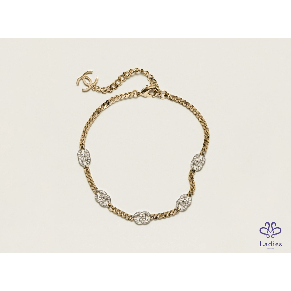 首頁 精品配件 全新 Chanel Choker 水鑽外雙C標誌頸鏈/ 鎖骨鏈/ 項鏈 淡金色 (可當手鏈) (五花)