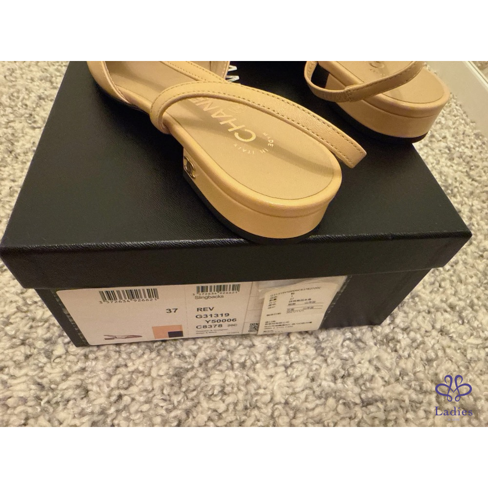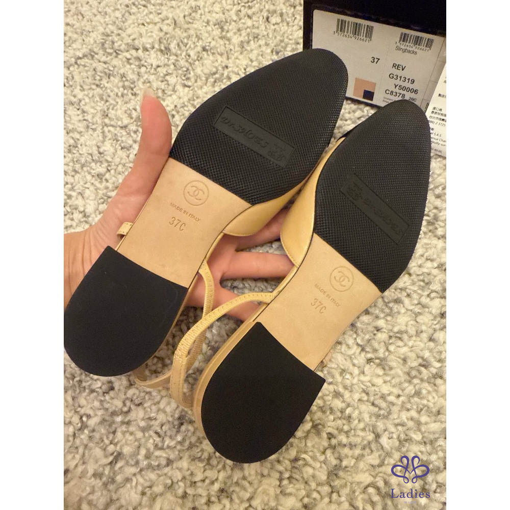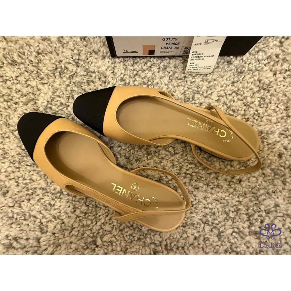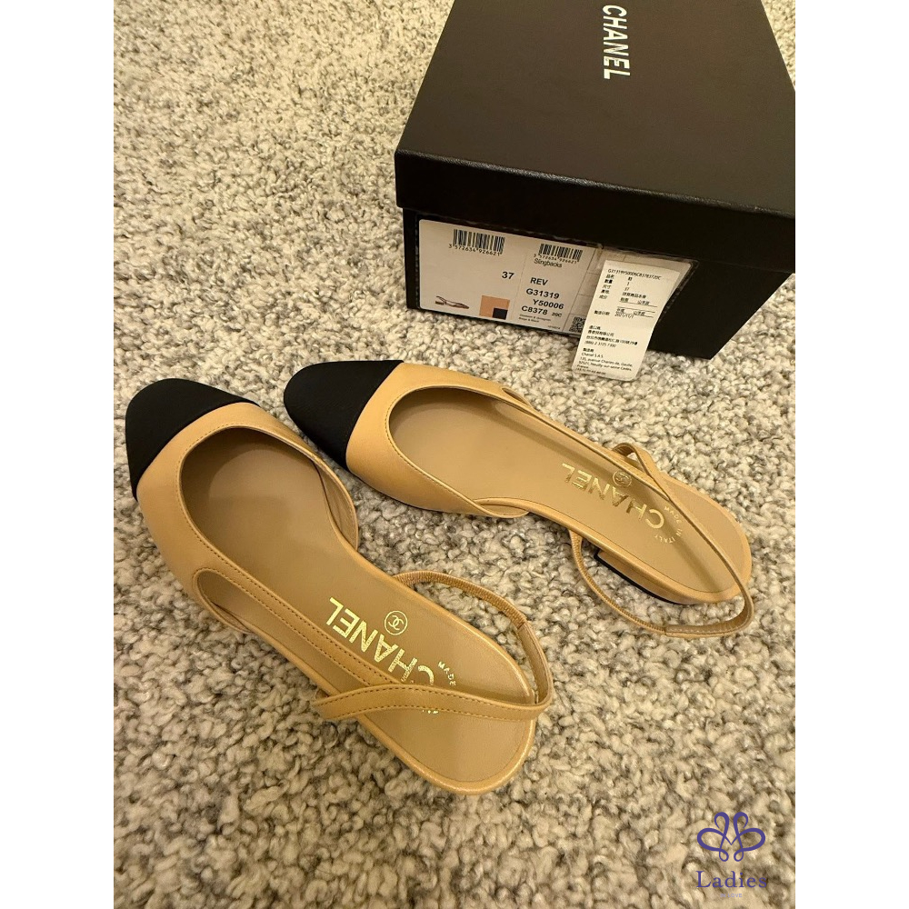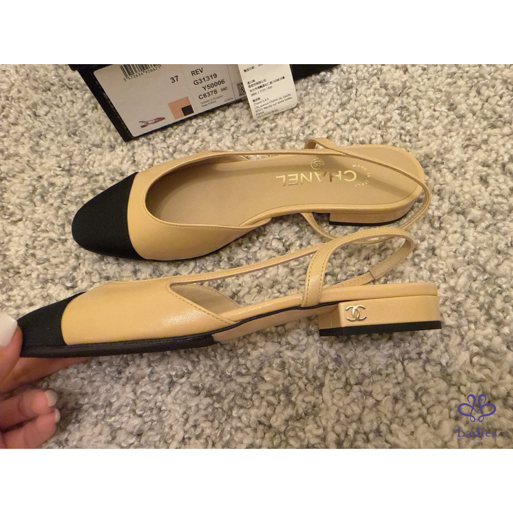 首頁 精品女鞋 全新Chanel經典款 米黑配色平底slings