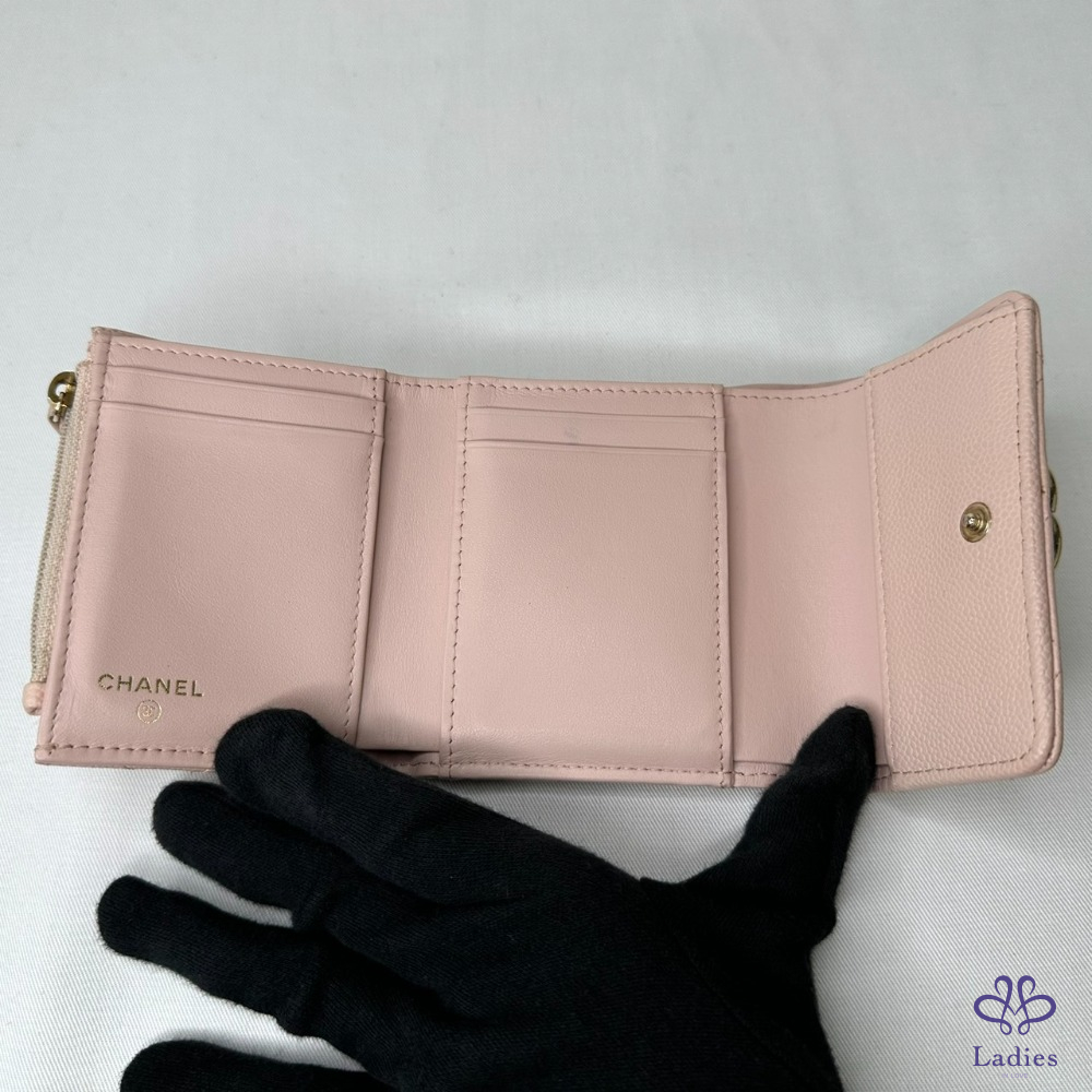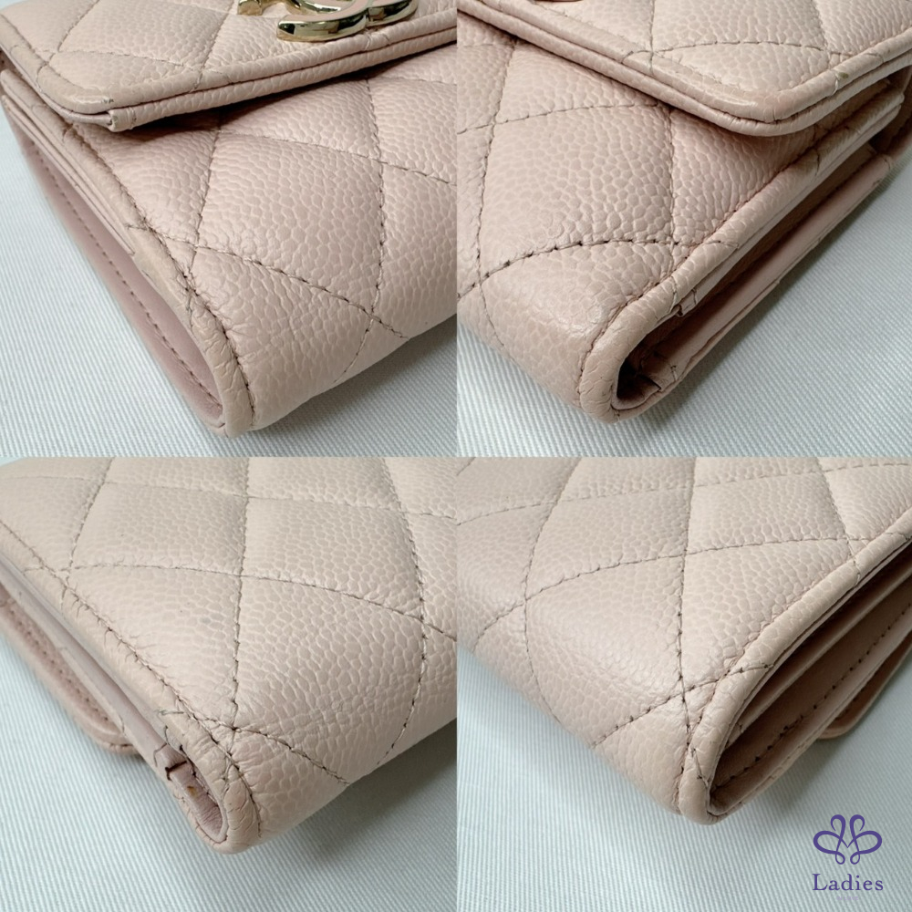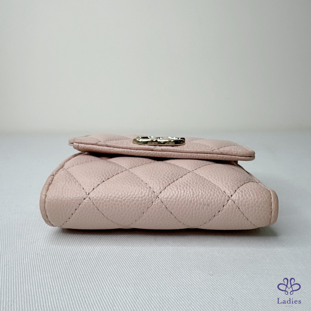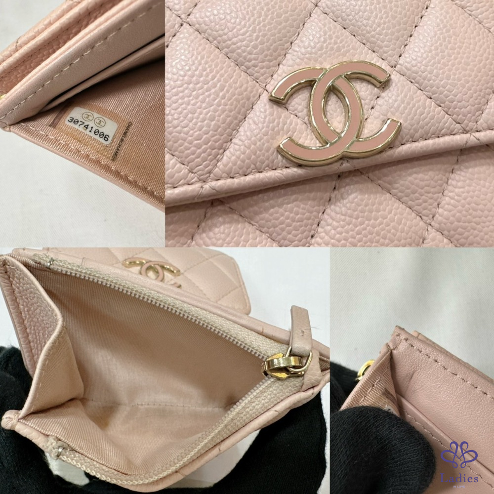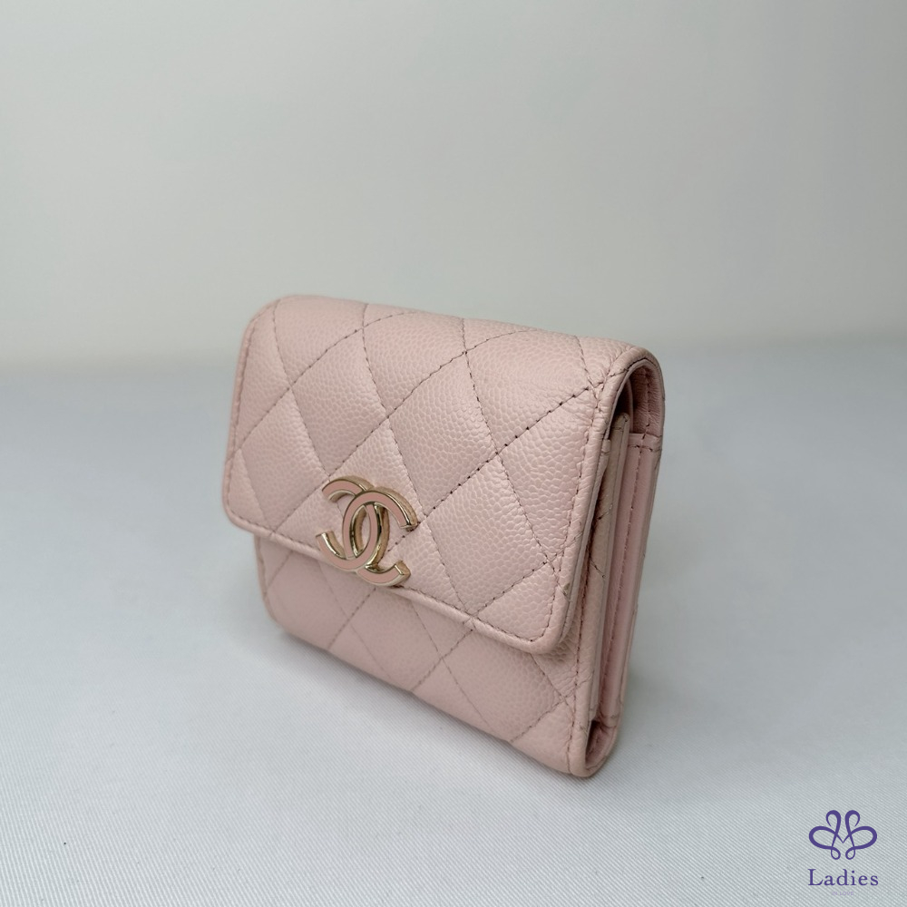 產品信息 【CHANEL 琺瑯雙C荔枝牛粉色短夾】 #30開卡標齊全 仙女粉配上質感粉金琺瑯扣,粉粉嫩嫩真的超好看 4個卡夾層 / 2個貼袋/1個鈔票層 /1個拉鏈零錢袋 整體包況新舊如圖,二手商品均有正常使用/存放痕跡 尺寸:10.5x10cm 附件:原廠盒、原廠紙袋、原廠防塵袋、保卡、雷標、山茶花緞帶、說明書 #B114061511