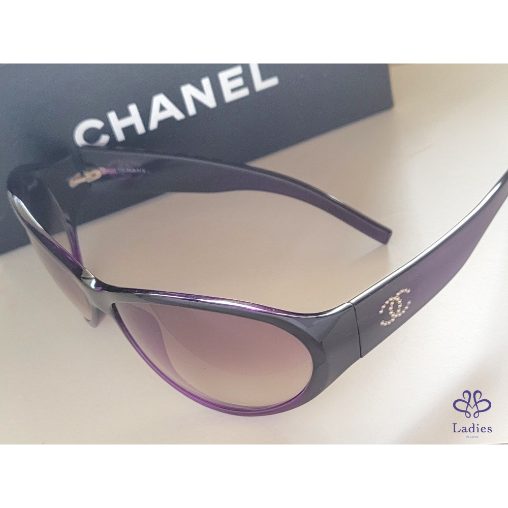 ~CHANEL 珍珠雙C 紫紅色框架太陽眼鏡(鏡片新的非原廠)