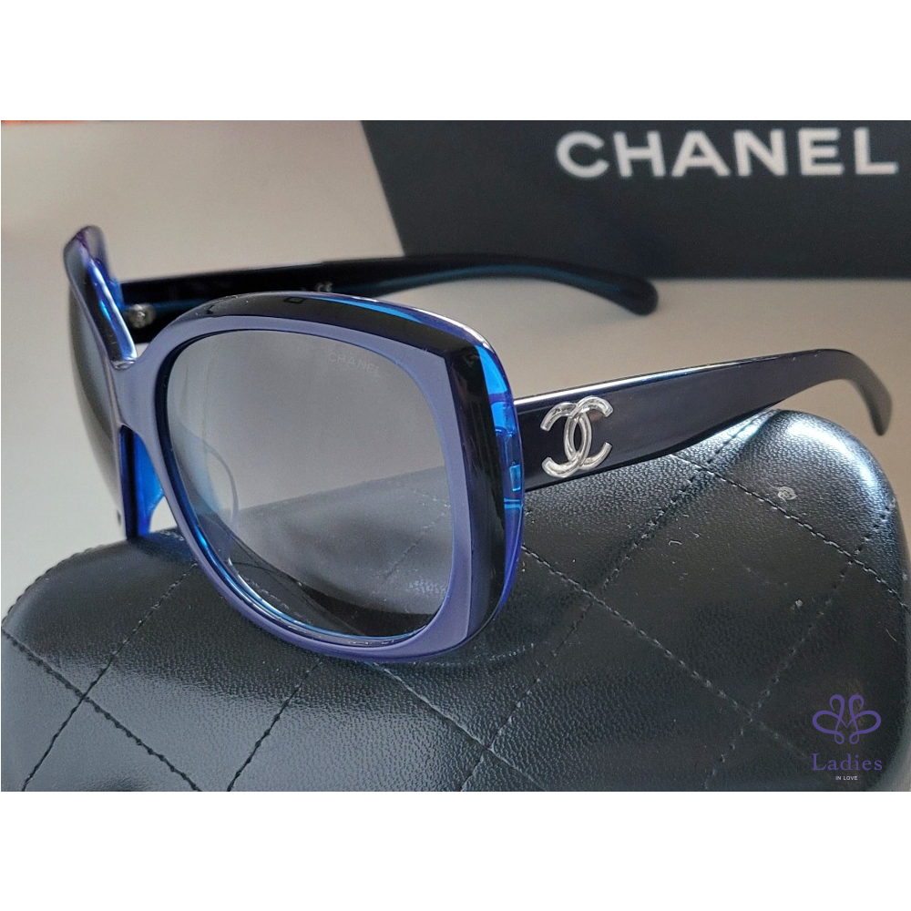 ~CHANEL 果凍白雙C藍色框架太陽眼鏡
