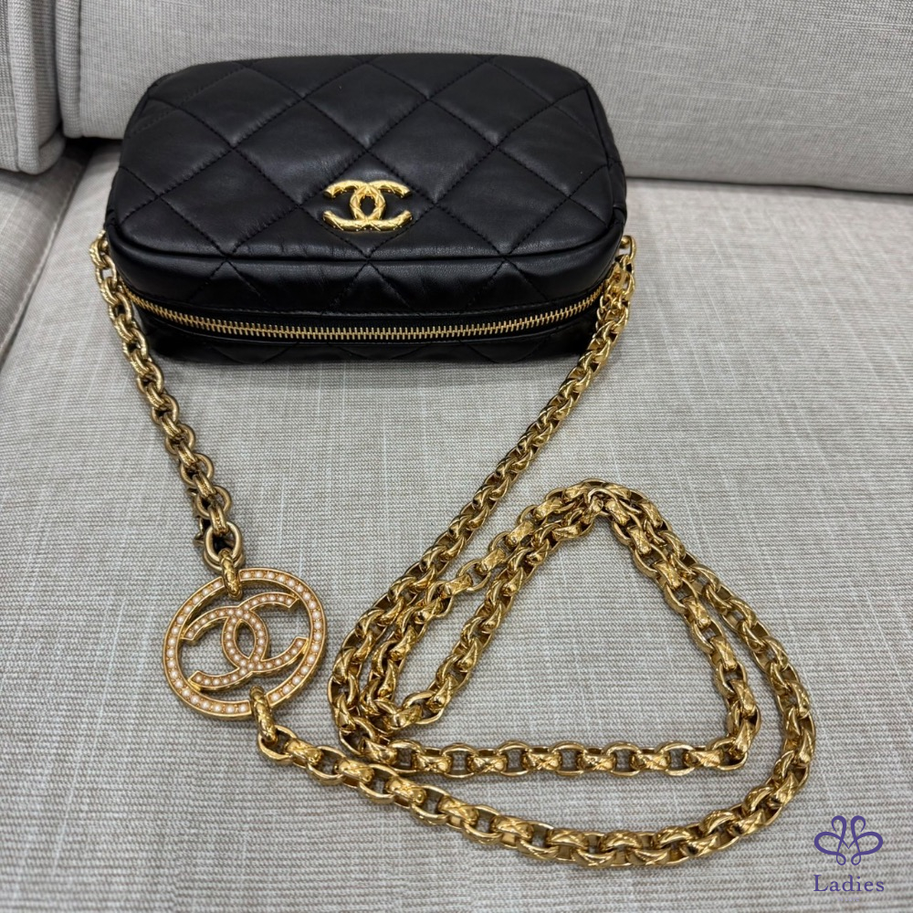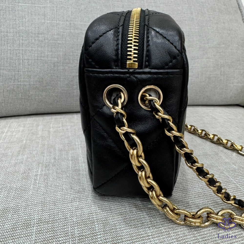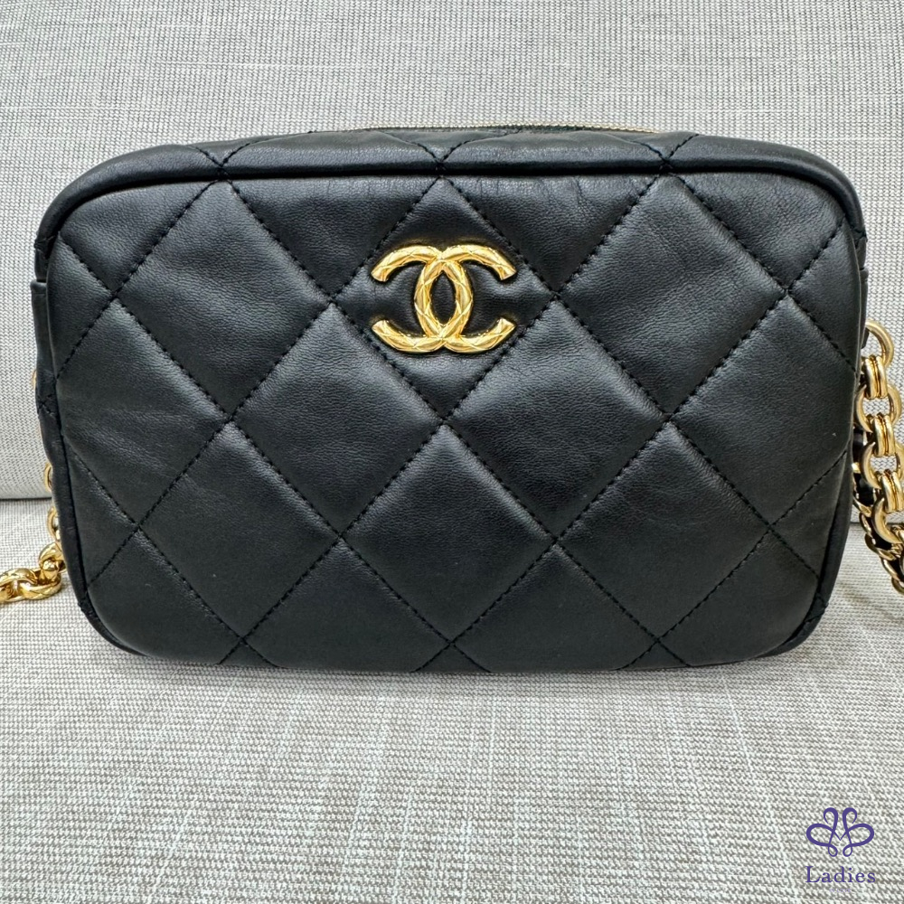 🛍️🛍️ 香奈兒 Chanel 黑金羊皮鎏金鍊相機包