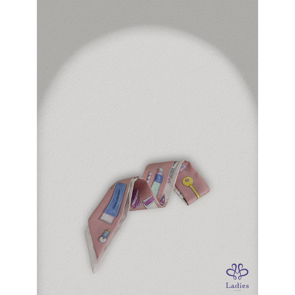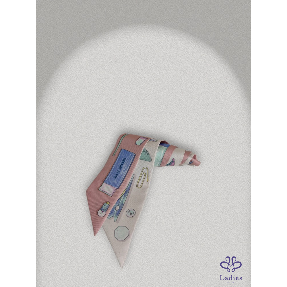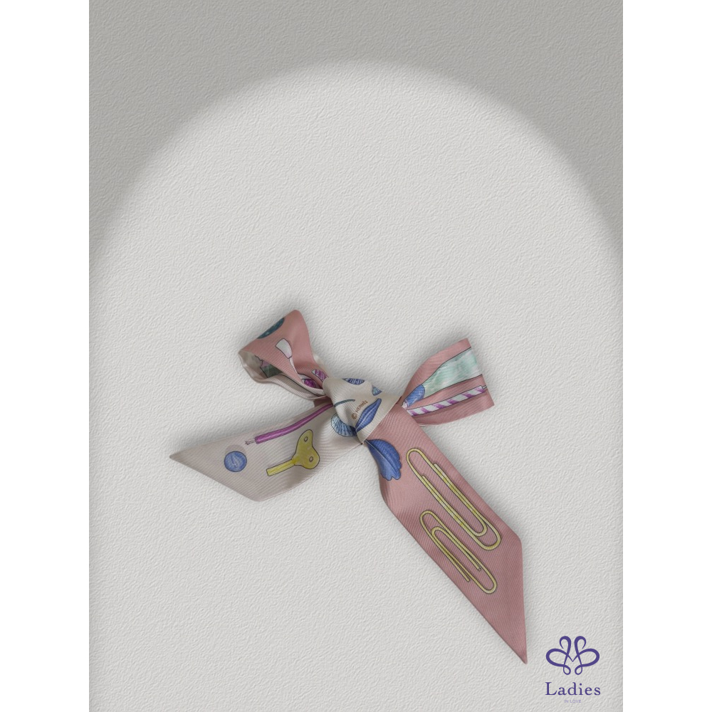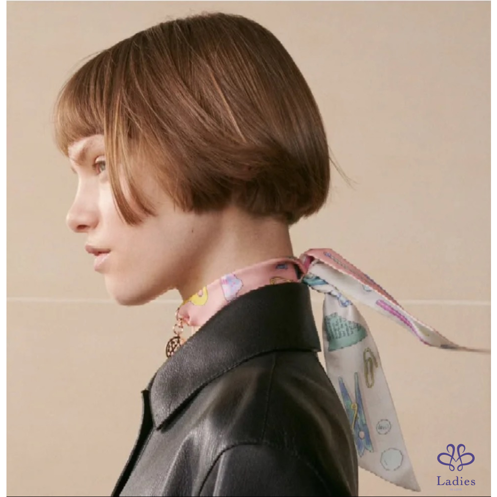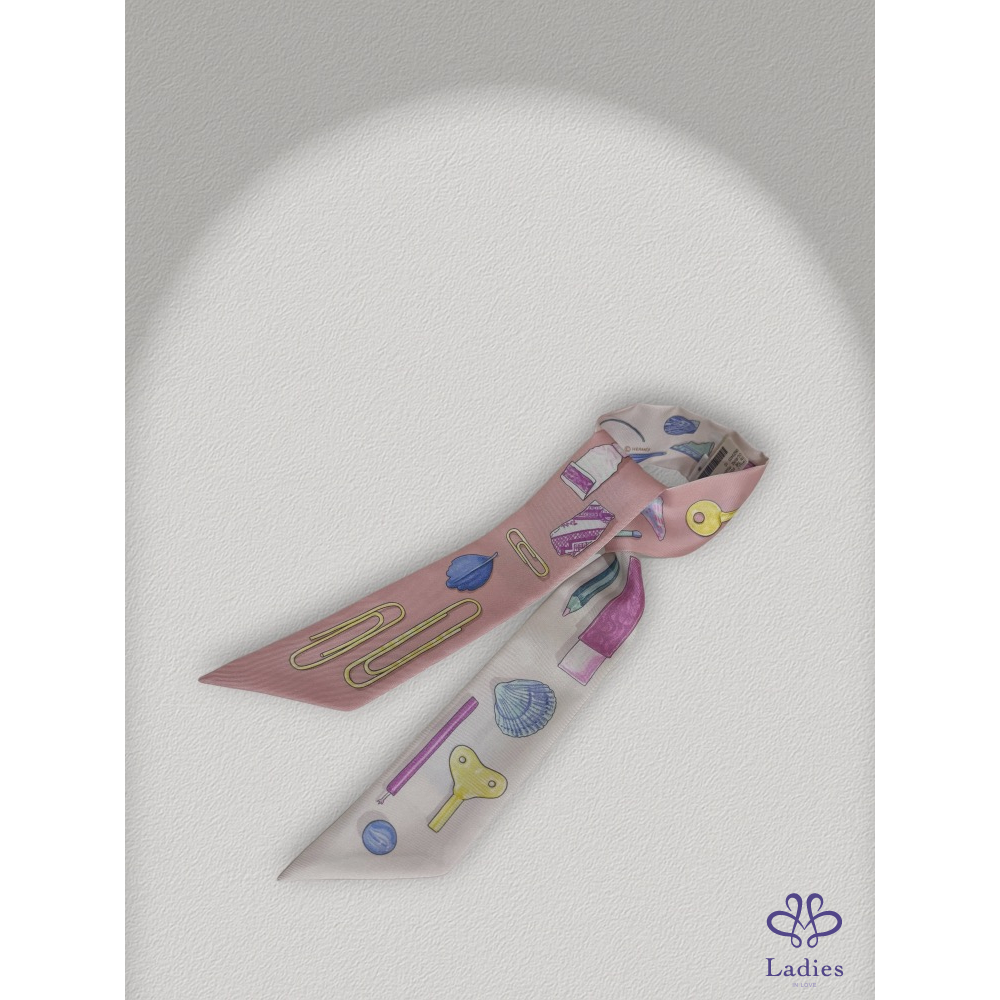 靈感來自日常生活中的小物——橡皮擦、迴紋針、鑰匙等圖案巧妙地藏在絲巾裡,這款 In The Pocket Twilly以溫柔的畫筆勾勒童趣細節,搭配本季大熱的 清新馬卡龍色調,呈現出 Hermès 少見的可愛溫柔氣質。
