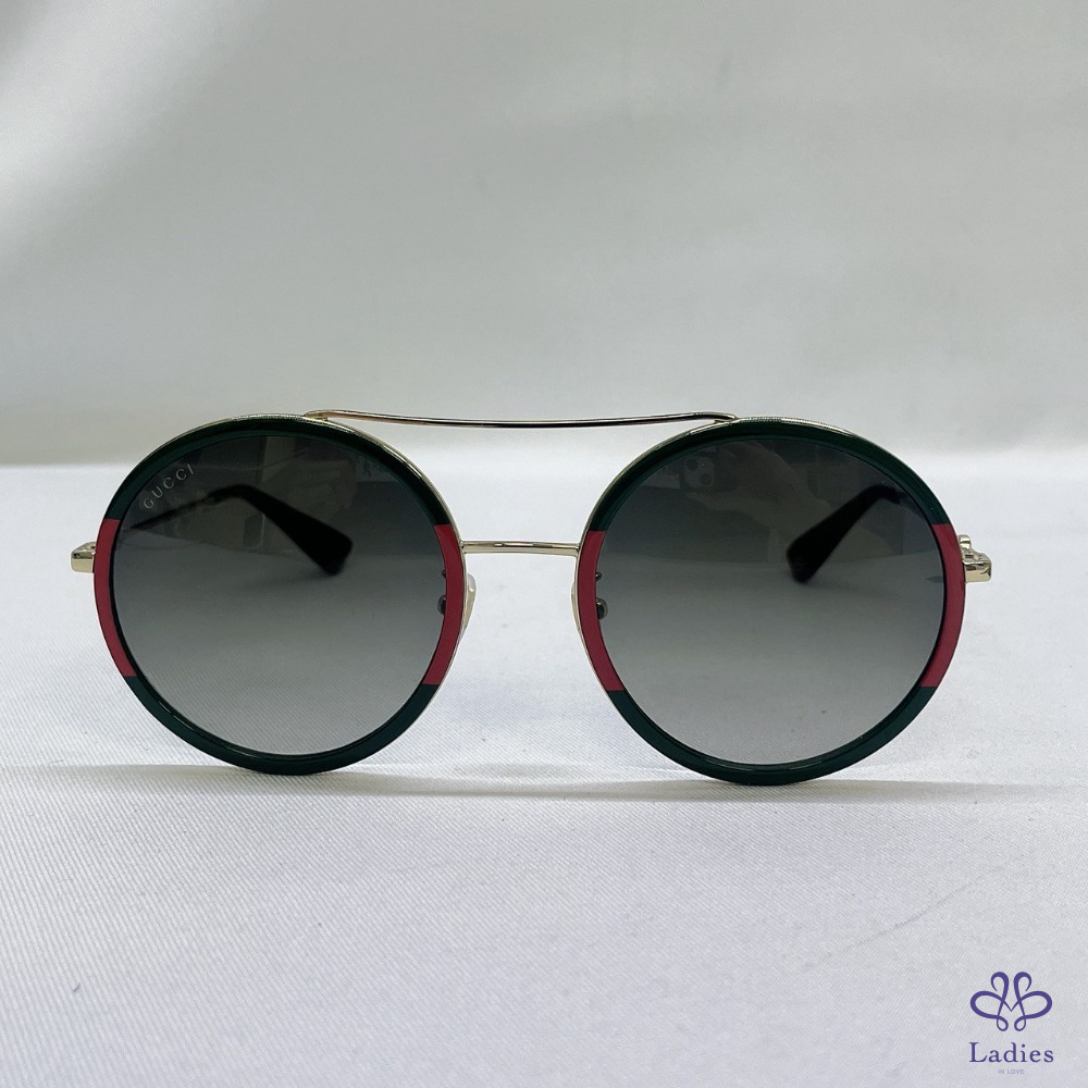 產品信息 【GUCCI 蜜蜂紅綠框太陽眼鏡】 以經典圓形設計和獨特深綠色與紅色線條點綴 為日常穿搭增添精緻 ⚜️整體品項近全新,二手商品均有正常存放痕跡 ⚜️附件:防塵袋、盒子、卡片、卡冊、拭鏡布 #A114051206