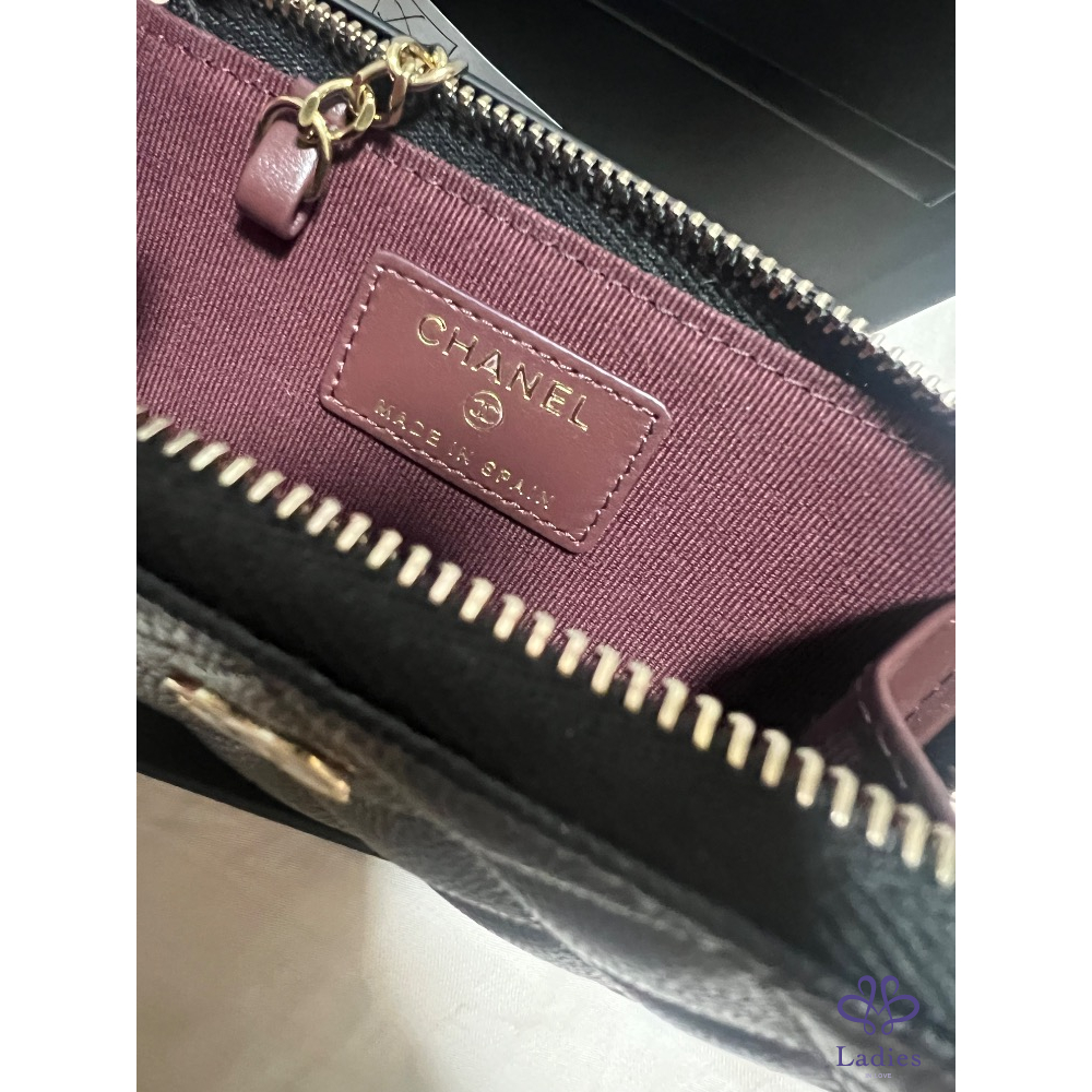 產品信息 商品名稱:Chanel 25B 鑰匙 零錢包 ❣️可當包掛 來源:台灣專櫃親購 產地:西班牙 尺寸:11.5*7*2cm 顏色:黑金 材質:荔枝牛皮 狀況:全新 附件:專櫃購證正本、防塵袋、盒子、緞帶、山茶花 容量好到不行!必收小可愛❤️ 鑰匙🔑卡片💳零錢🪙鈔票💴 都可以放 還可以當包掛❣️❣️❣️ 非專業賣家高標請靠櫃/售出不退