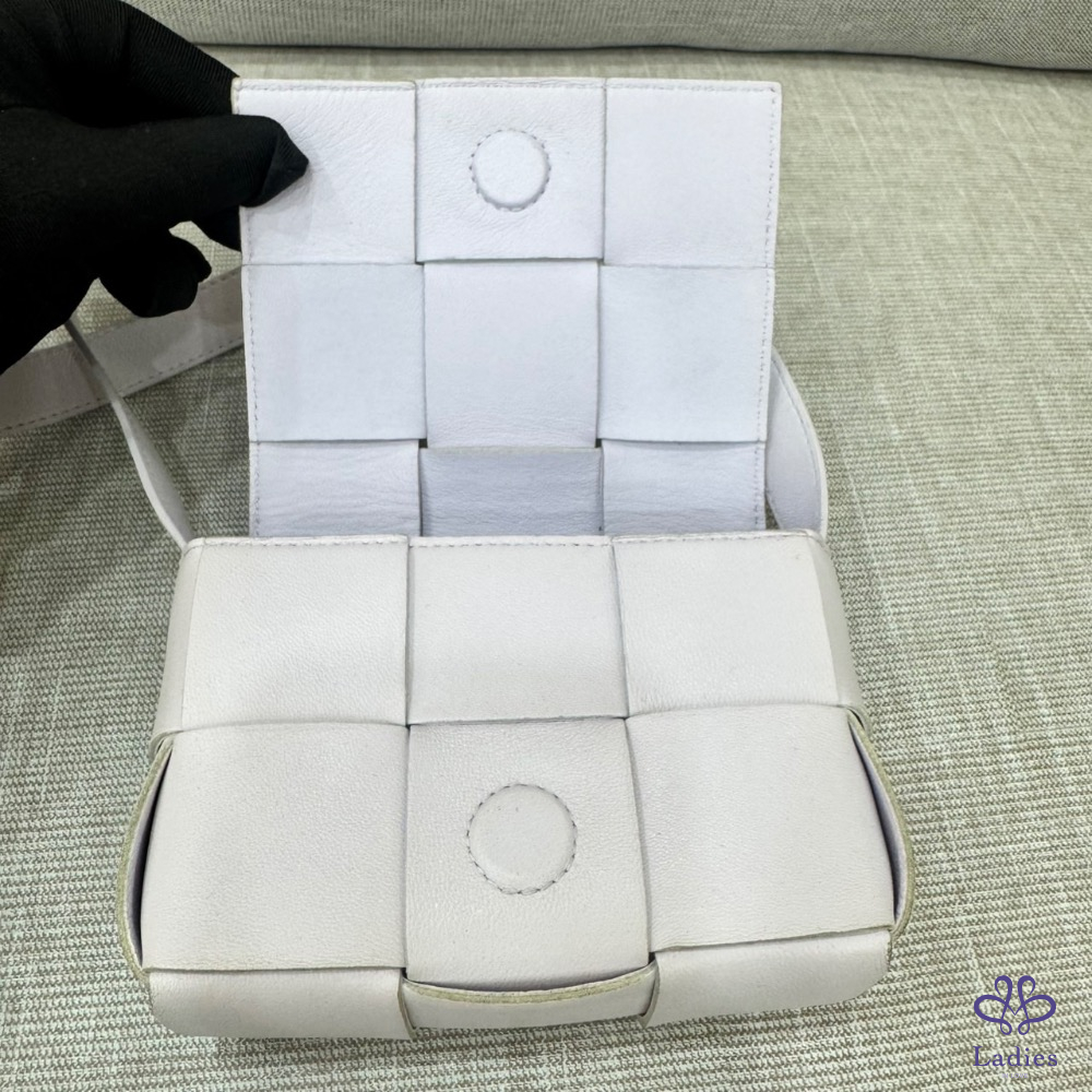 ⭕️ BOTTEGAVENETA mini cassette迷你小廢包,給好多人問爆的小廢包,雖然能裝的東西不多但可愛是真的~白色的也超級好配衣服,可鹽可甜,casstte Intreccio斜挎包別看著小 日常出街背完全夠用的,口紅 唇膏、卡包、鑰匙、紙巾、滿滿登登但是裝不了手機,白色的也很好看,皮編織髒了擦一擦就好沒”