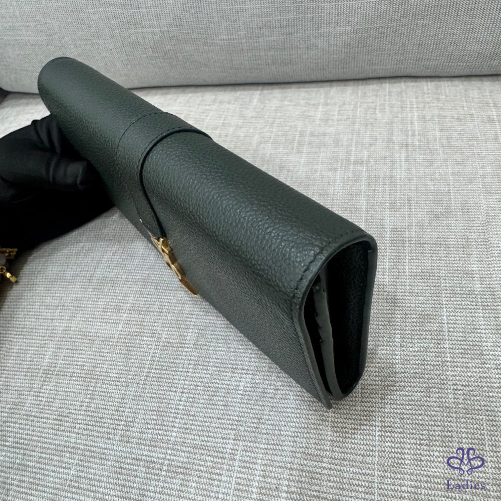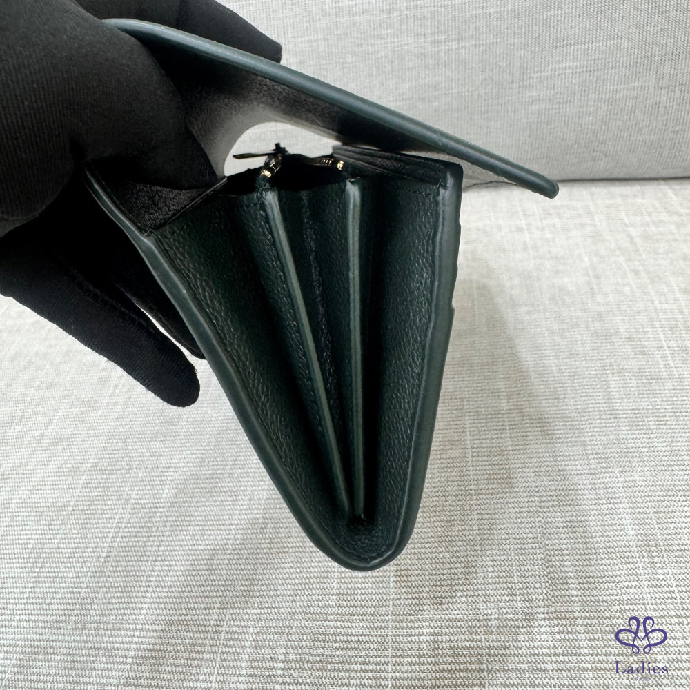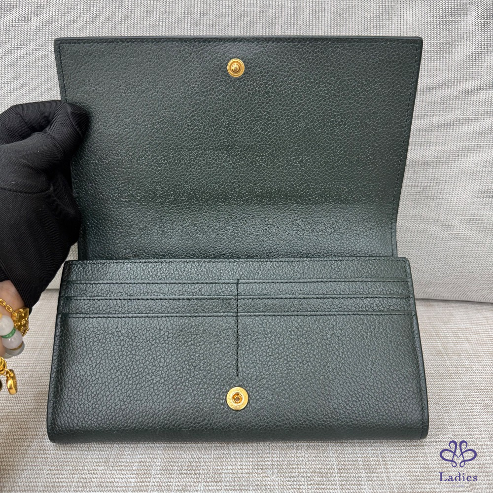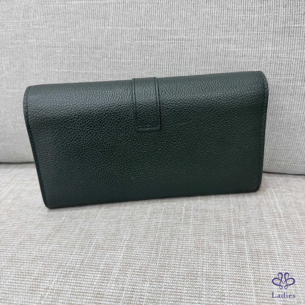 💖💖 YSL 聖羅蘭 經典LOGO荔枝紋牛皮釦式長夾 金釦深綠