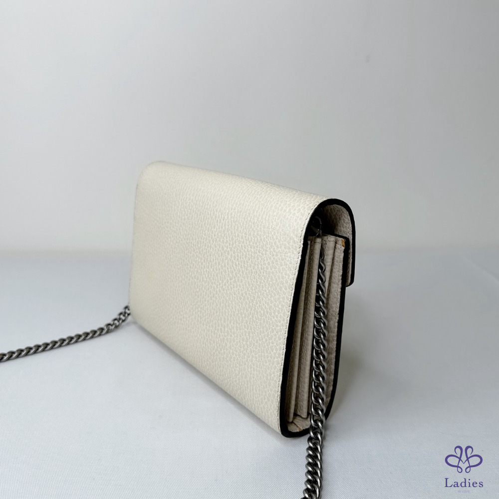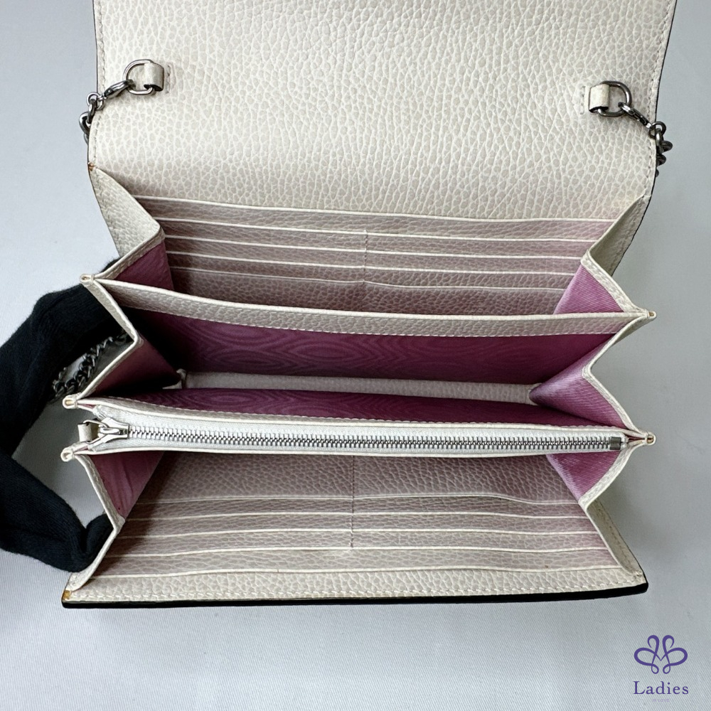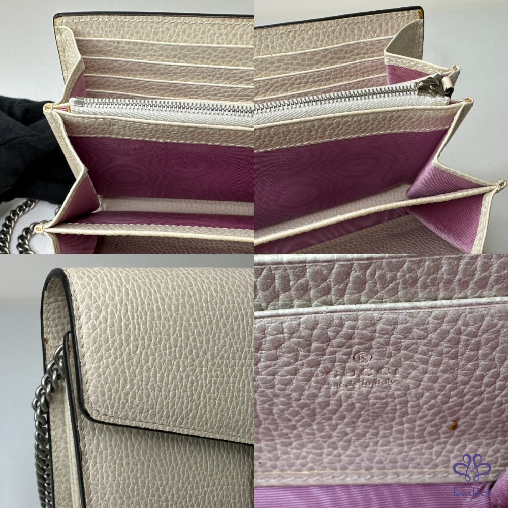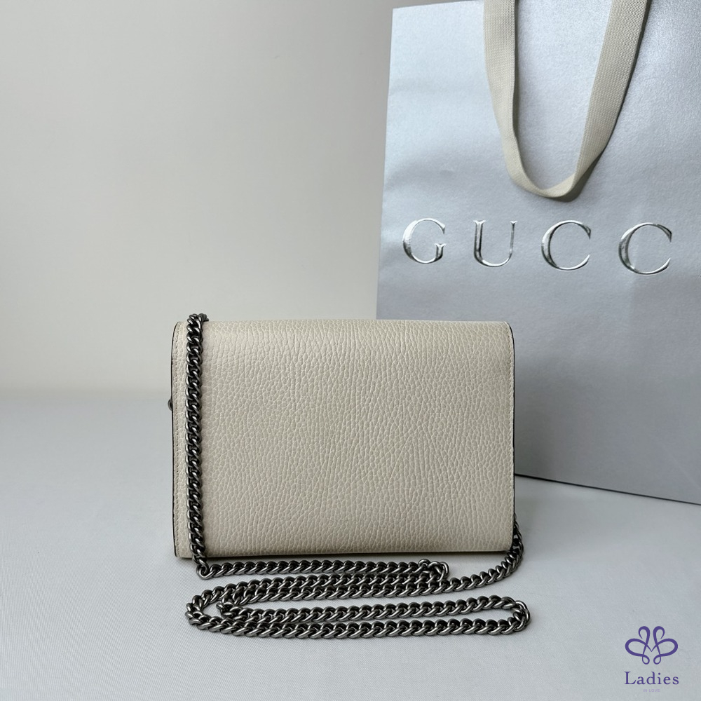 產品信息 【GUCCI Dionysus WOC酒神包】 #櫃上價已破6萬 獨特古銀色虎頭扣飾開合 虎頭扣上飾有Swarovski水晶石 16個卡片夾層 / 2個鈔票隔層 3個獨立的內部隔層 / 1個拉鏈零錢格 #幾處原廠溢膠不影響使用 整體包況約9成5新,二手商品均有正常使用/存放痕跡 型號:401231 尺寸:20x13x6cm 附件:原廠紙袋 #B114062507