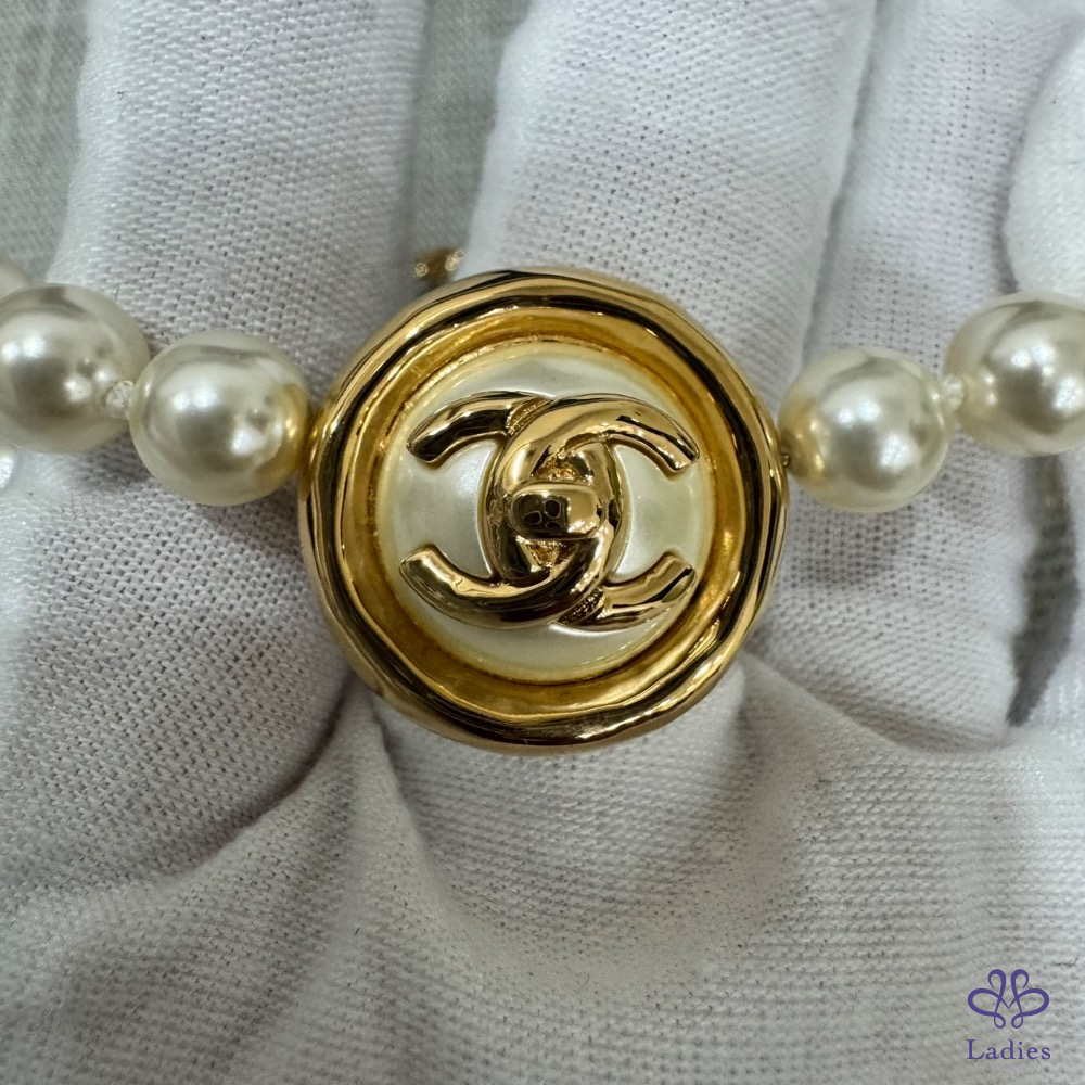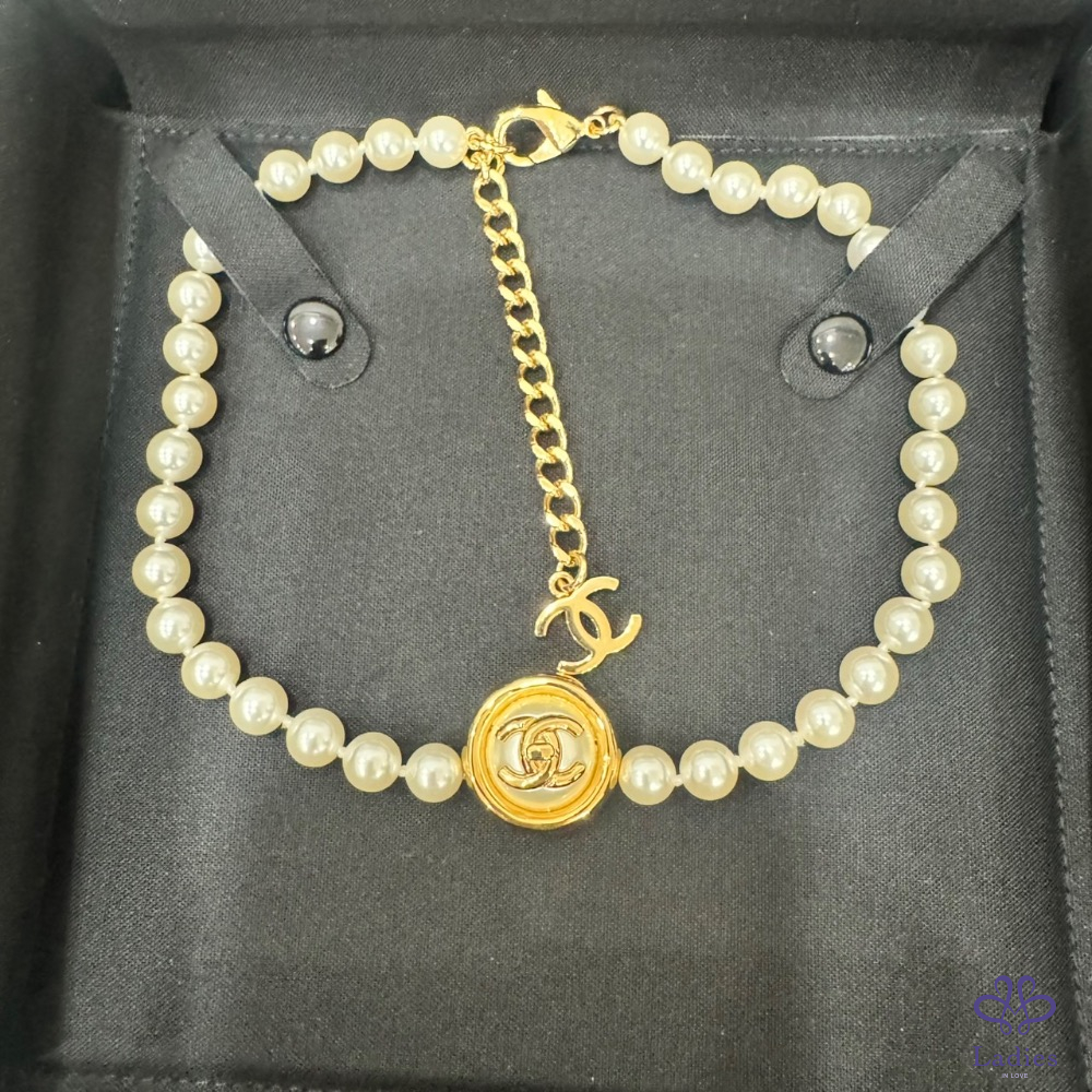 ⭕️ Chanel 24A新款高級手工坊金色雙C紐扣珍珠項鍊,金色書包扣雙C紐扣很有 vintage質感,搭配珍珠項鍊復古高級又顯氣質,這種 choker款式超百搭,白富美人手必備