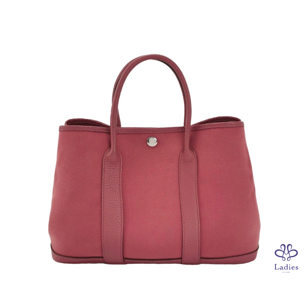 Hermes GP 30 公分 手提包帆布 Negonda牛皮银扣G5玫瑰木粉框c刻