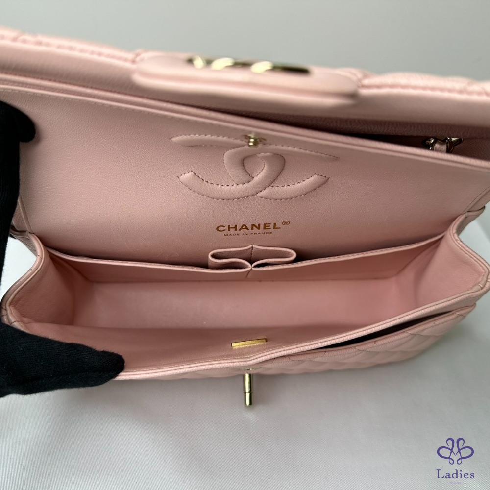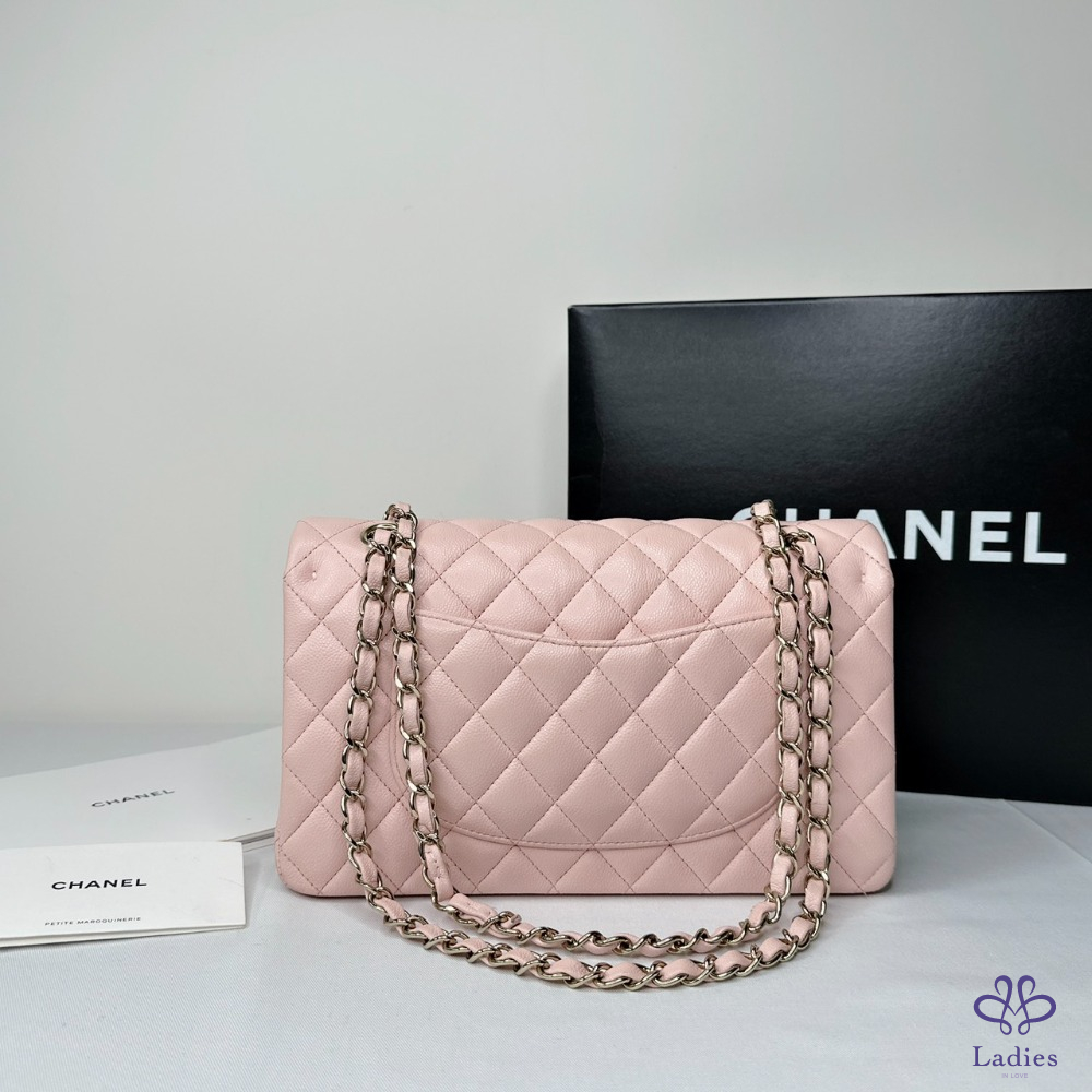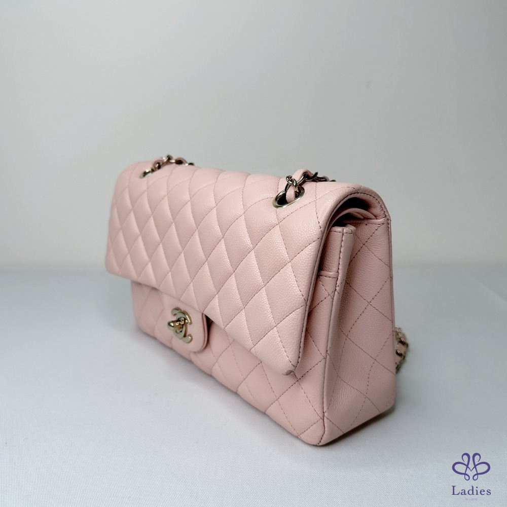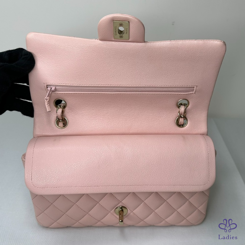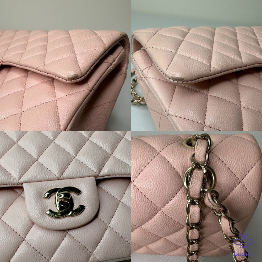 產品信息 【CHANEL 淡粉荔枝牛Coco 25口蓋包】 #晶片款 #專櫃價近37萬 黃金尺寸經典荔枝牛,氣質淡粉x淡金 僅兩角有使用痕跡已反映在售價 #便宜到爆 包身其他地方都非常漂亮新穎 整體包況新舊如圖,二手商品均有正常使用/存放痕跡 型號:A01112 尺寸:25.5x15.5x6.5cm 附件:原廠盒、冊本、說明書 #B114062501