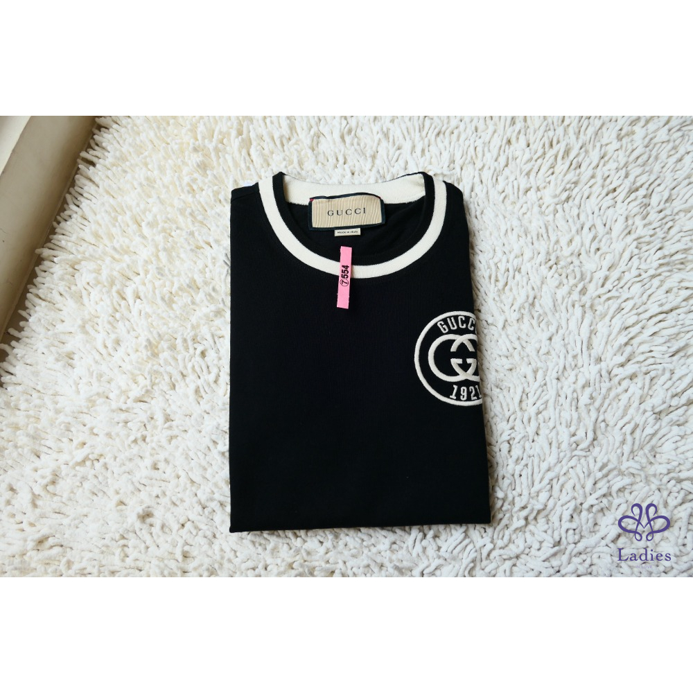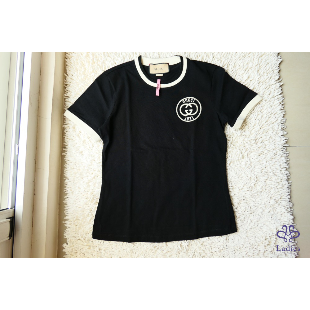 咕磯 新款 黑色棉t-shirt LOGO刺繡高質感
