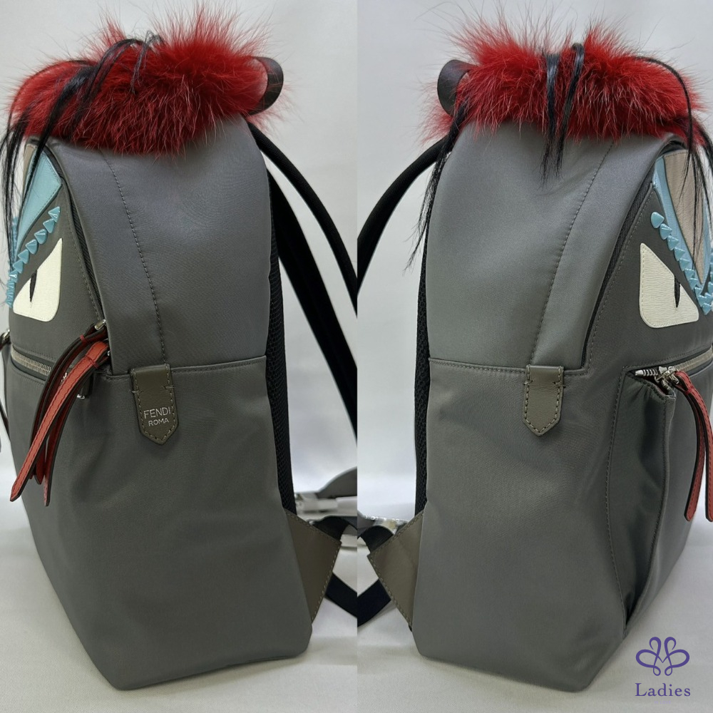 產品信息 【FENDI 怪獸皮草後背包】 經典Bag Bugs怪獸眼睛圖案為主要設計元素💯 搭配灰色包身、藍色與白色眼睛圖案,及頂部紅色毛球裝飾✨ 造型獨特且充滿趣味💛💚💜🤎🩷🎈 ⚜️整體包況近新品,二手商品均有正常使用/存放痕跡 ⚜️型號:8BZ035 ⚜️尺寸:32x29x12cm ⚜️附件:防塵袋 #A114072202